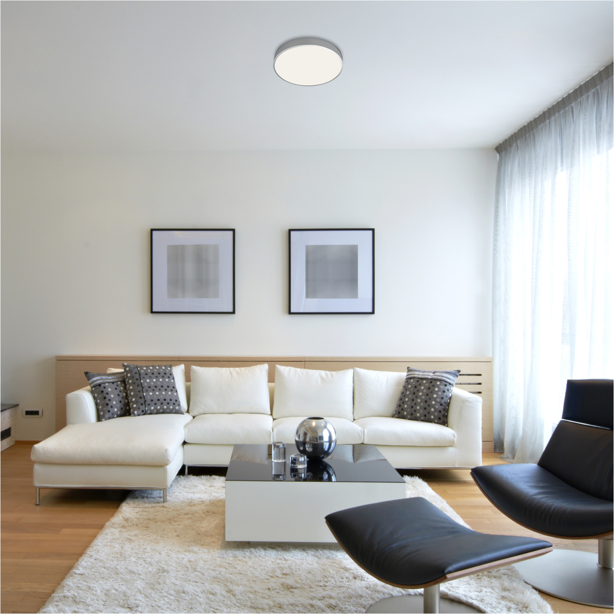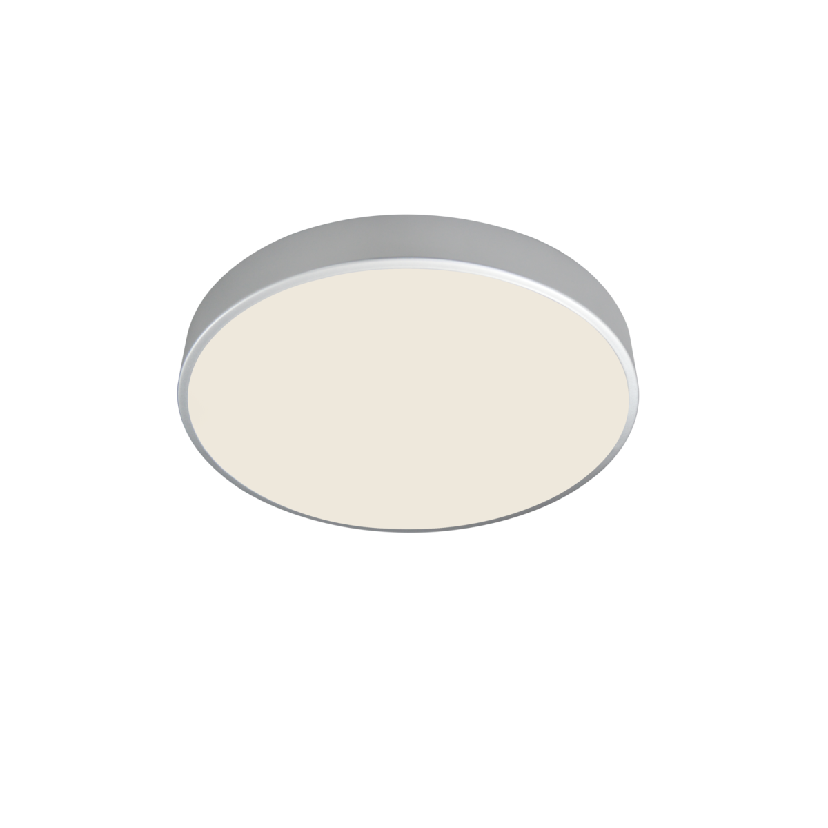 A kerek Tesia mennyezeti lámpa modern nappalink vagy hálószobánk berendezésének diszkrét, praktikus darabja lehet. A fémből készült, ezüstszínű lámpatestet fehér műanyag búra egészíti ki. különösen vékony kialakítású mennyezeti lámpa átmérője 400mm, mennyezettől mért távolsága pedig mindössze 50mm.