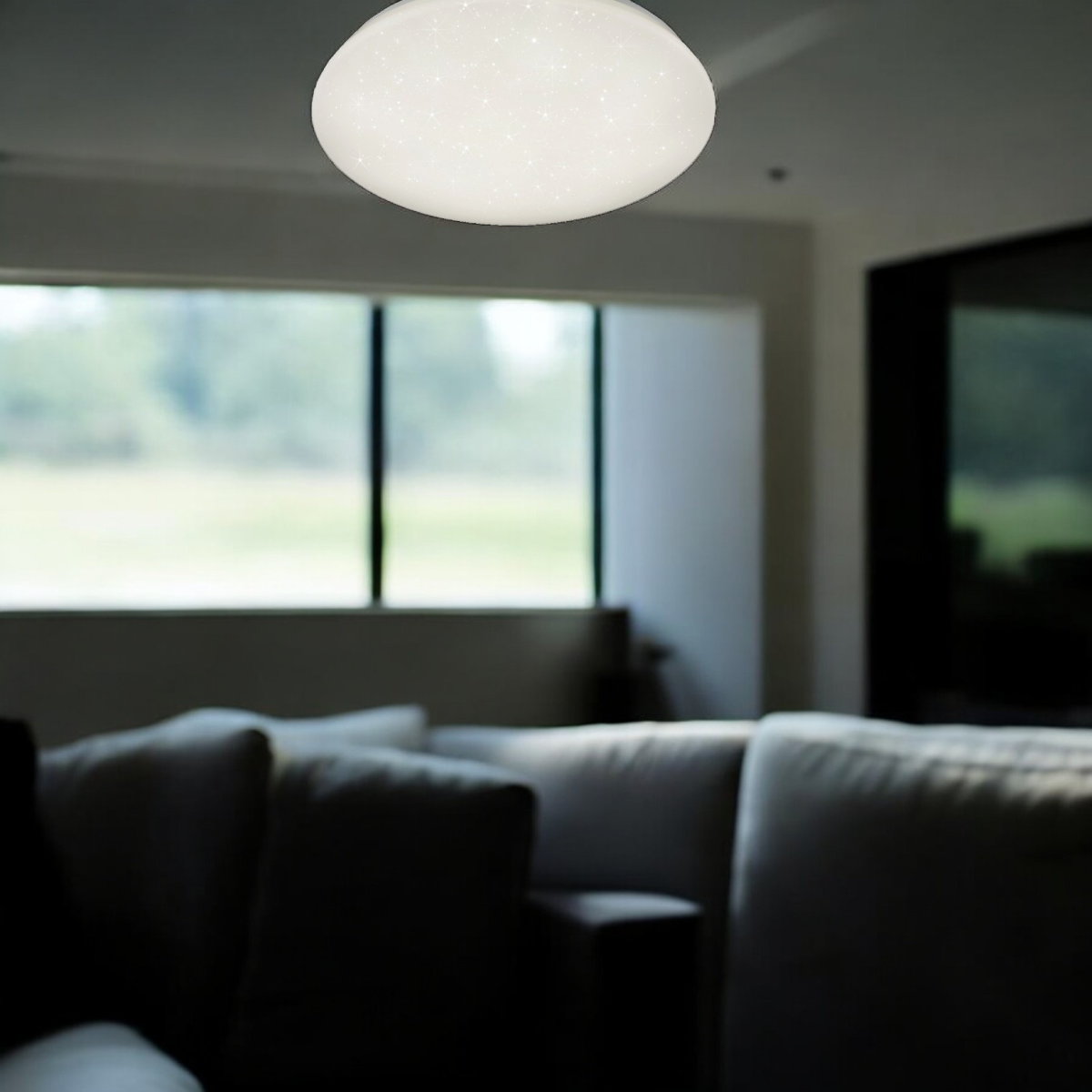 LED mennyezeti lámpa fehér színben, csillag effektes burával.