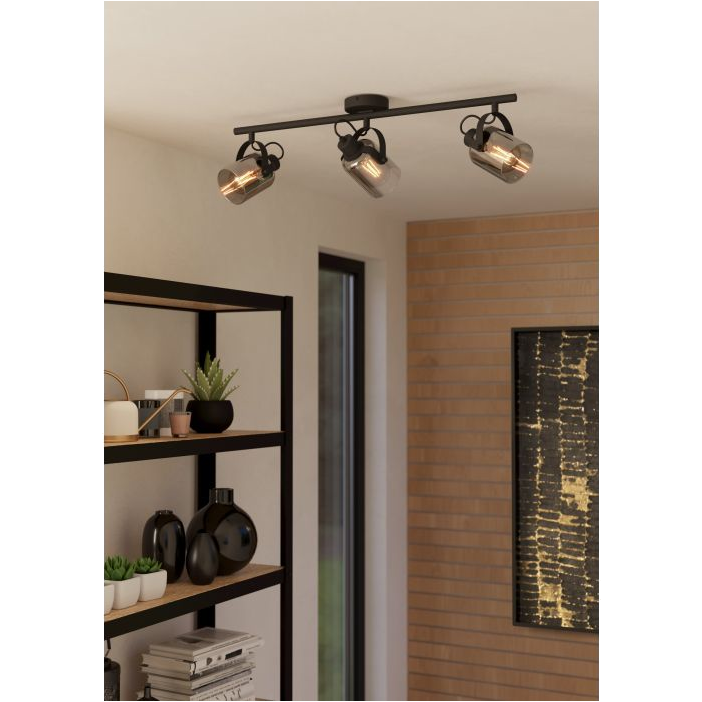 Spot lámpa E27 3X40W, fekete, szürke üveg színben, fényforrás nélkül értékesítjük.