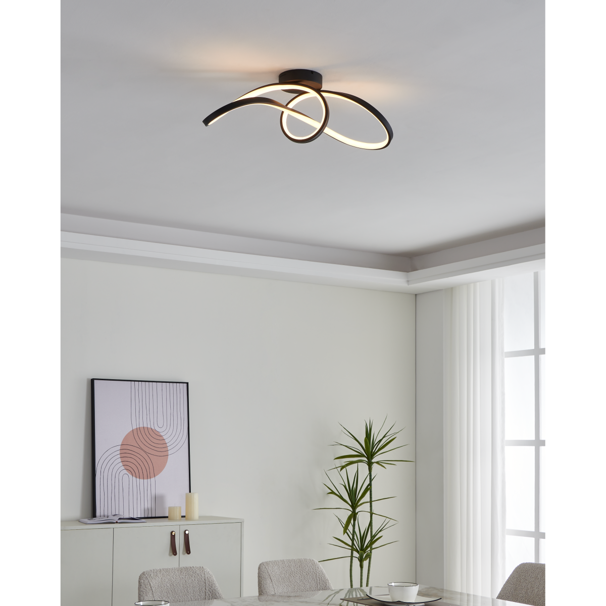 Az EGLO Calarossa-Z LED mennyezeti lámpa modern fekete és fehér színkombinációjával stílusos kiegészítője bármely helyiségnek. A 22W-os teljesítménnyel és 2500 lumen fényerővel rendelkező lámpa 2700K és 6500K között állítható színhőmérsékletet kínál, amely az alkalmazás vagy távirányító segítségével könnyedén szabályozható. A lámpa IP20-as védettséggel rendelkezik, és 75x23x110 cm-es méretével ideális választás nagyobb terekbe, míg a távirányító külön vásárolható meg.