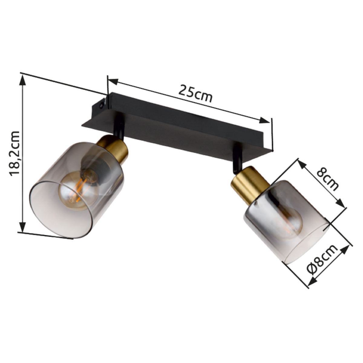 Merülj el a HOLLSY lámpatestek világában és tapasztald meg a ragyogó világítást! Fekete és arany matt fémből készült spot fali lámpánk minden helyiségben megragadja a tekintetet. Az átlátszó és füstszínű színátmenetes üveg búra egy csipetnyi eleganciát visz otthonodba. A 25x8x18.2 cm-es (hossz x szélesség x magasság) méreteivel a HOLLSY spotlámpák tökéletesen illeszkednek a belső terekbe. Az E14-es foglalatok lehetővé teszik, hogy a fény színét és fényerejét te határozd meg, akár 2x25 W maximális teljesítményig. Fedezd fel a HOLLSY világítás lenyűgöző világát, és hagyd otthonodat új fényben ragyogni!