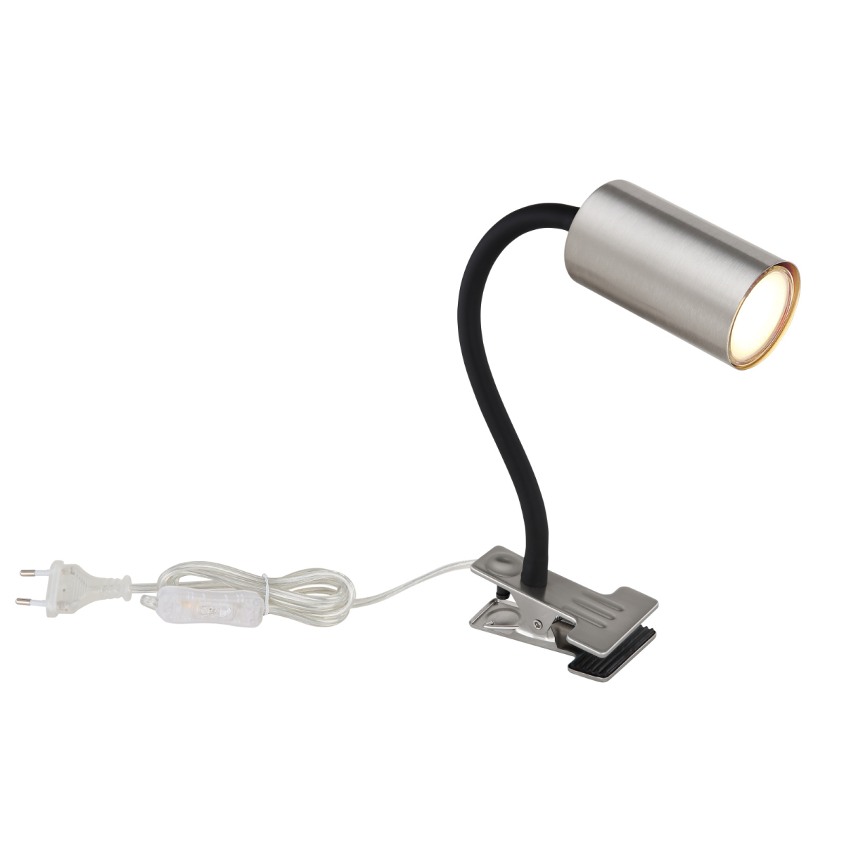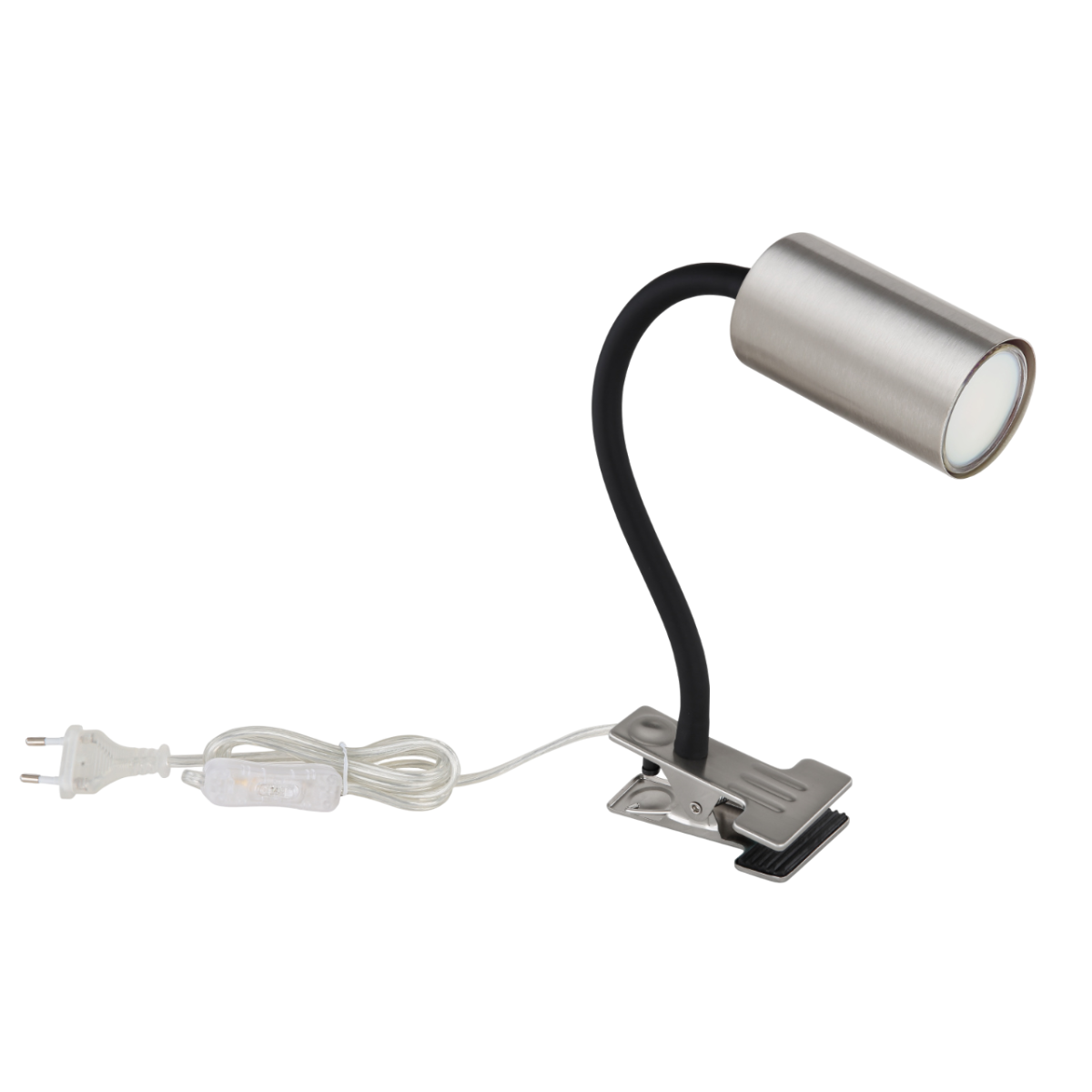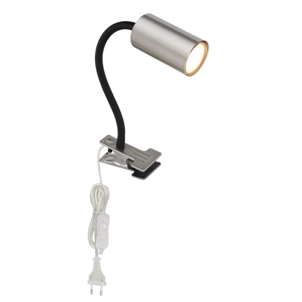 Ez a hordozható, csiptethetős asztali lámpa a Robby család tagja. Fekete műanyagból és nikkelmatt fémből készült. A lámpa kapcsolóval rendelkezik és mozgatható is (flexo). A GU10 foglalat lehetővé teszi, hogy szabadon válassz fényforrást (max. 25 W). Hosszú élettartamuk és energiatakarékosságuk miatt a LED-es termékeket ajánljuk.