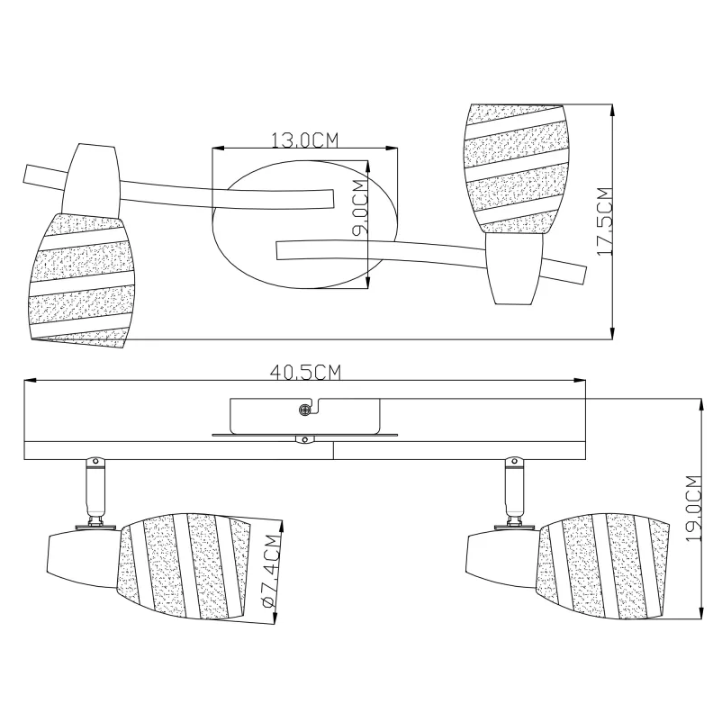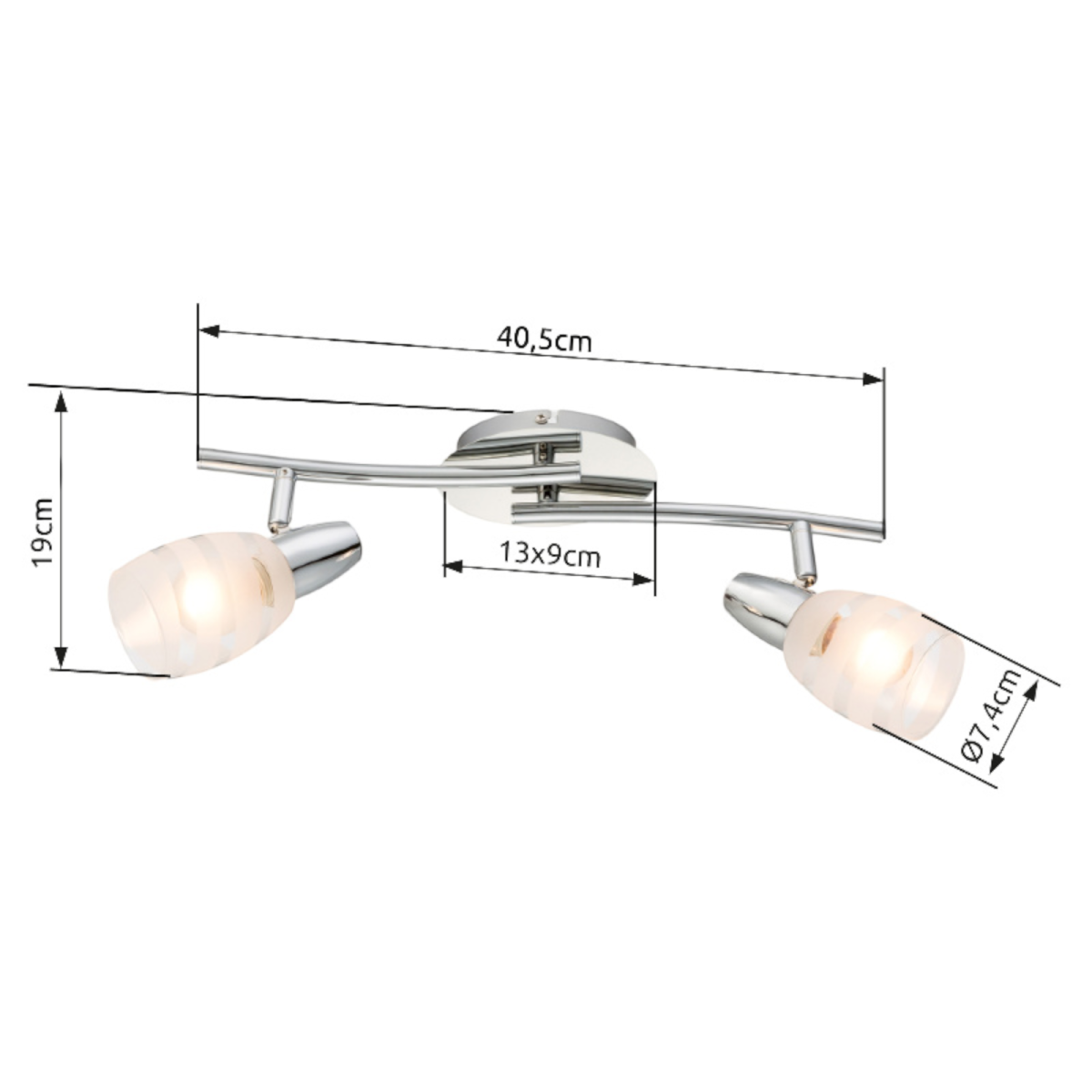 Fényes króm vázzal és víztiszta, homok fúvott dekorcsíkokkal üveg burával készült, melytől igen egyedi kinézete van a Roy spotlámpának. Ezen felül állítható a bura, mivel a nyakrészen csuklópont található. továbbá billenőkapcsoló helyezkedik el a falikaron, mellyel a lámpát kapcsolhatjuk. 2 db E14-es foglalattal rendelkezik, mely 2 db maximum 40W teljesítményű fényforrással üzemeltethető.