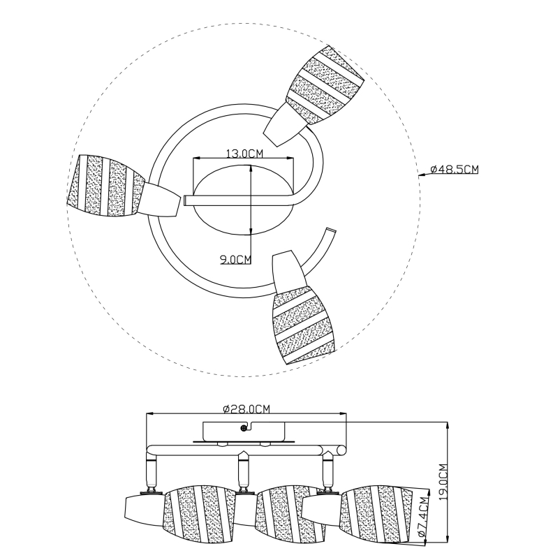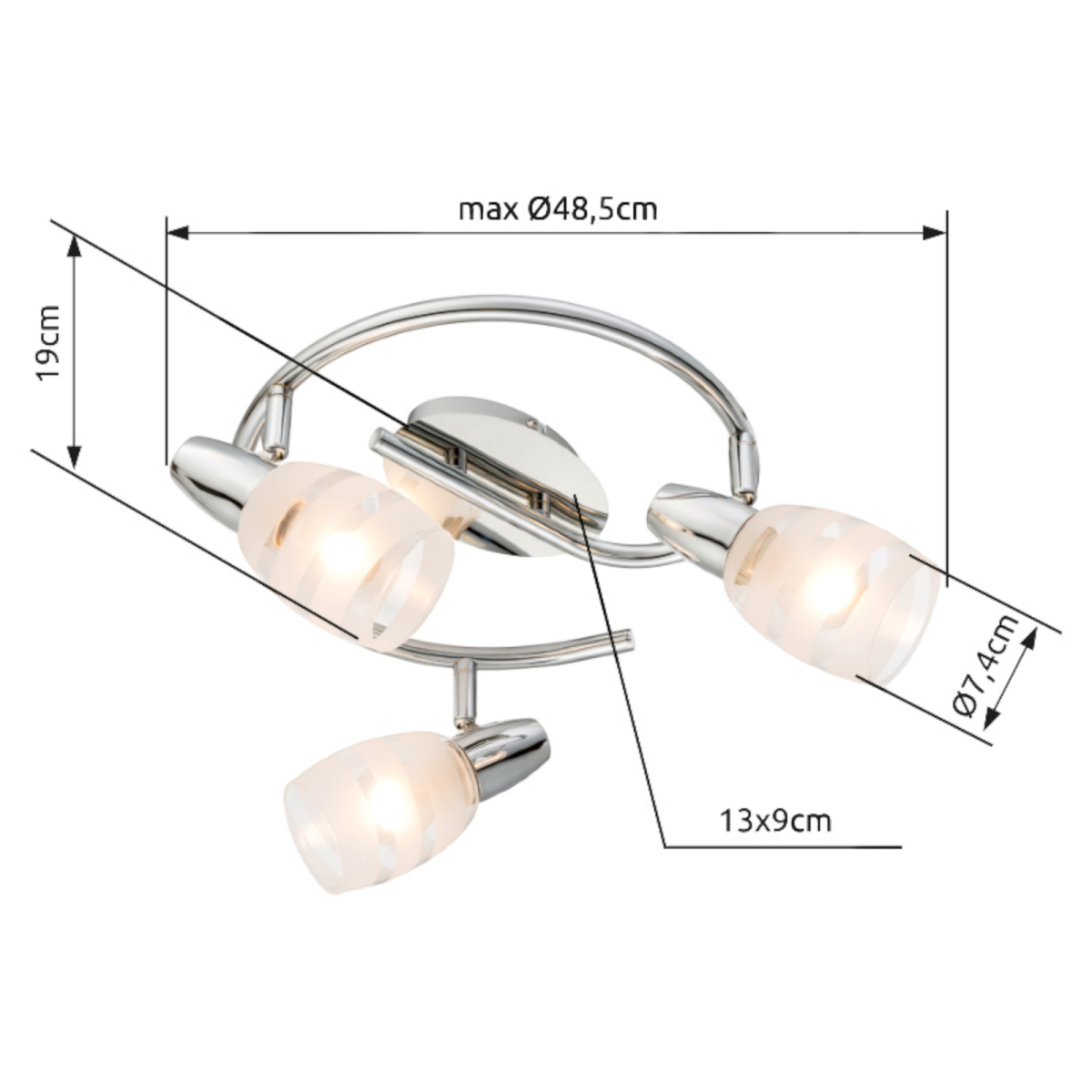 Fényes króm vázzal és víztiszta, homok fúvott dekorcsíkokkal üveg burával készült, melytől igen egyedi kinézete van a Roy spotlámpának. Ezen felül állítható a bura, mivel a nyakrészen csuklópont található. továbbá billenőkapcsoló helyezkedik el a falikaron, mellyel a lámpát kapcsolhatjuk. 3 db E14-es foglalattal rendelkezik, mely 3 db maximum 40W teljesítményű fényforrással üzemeltethető.