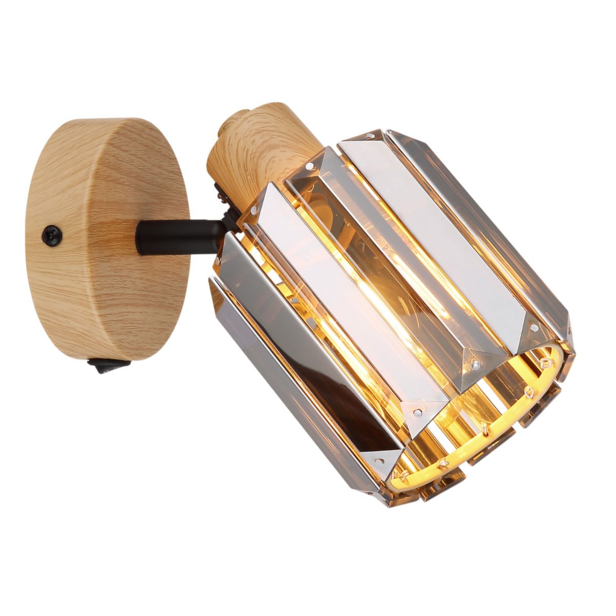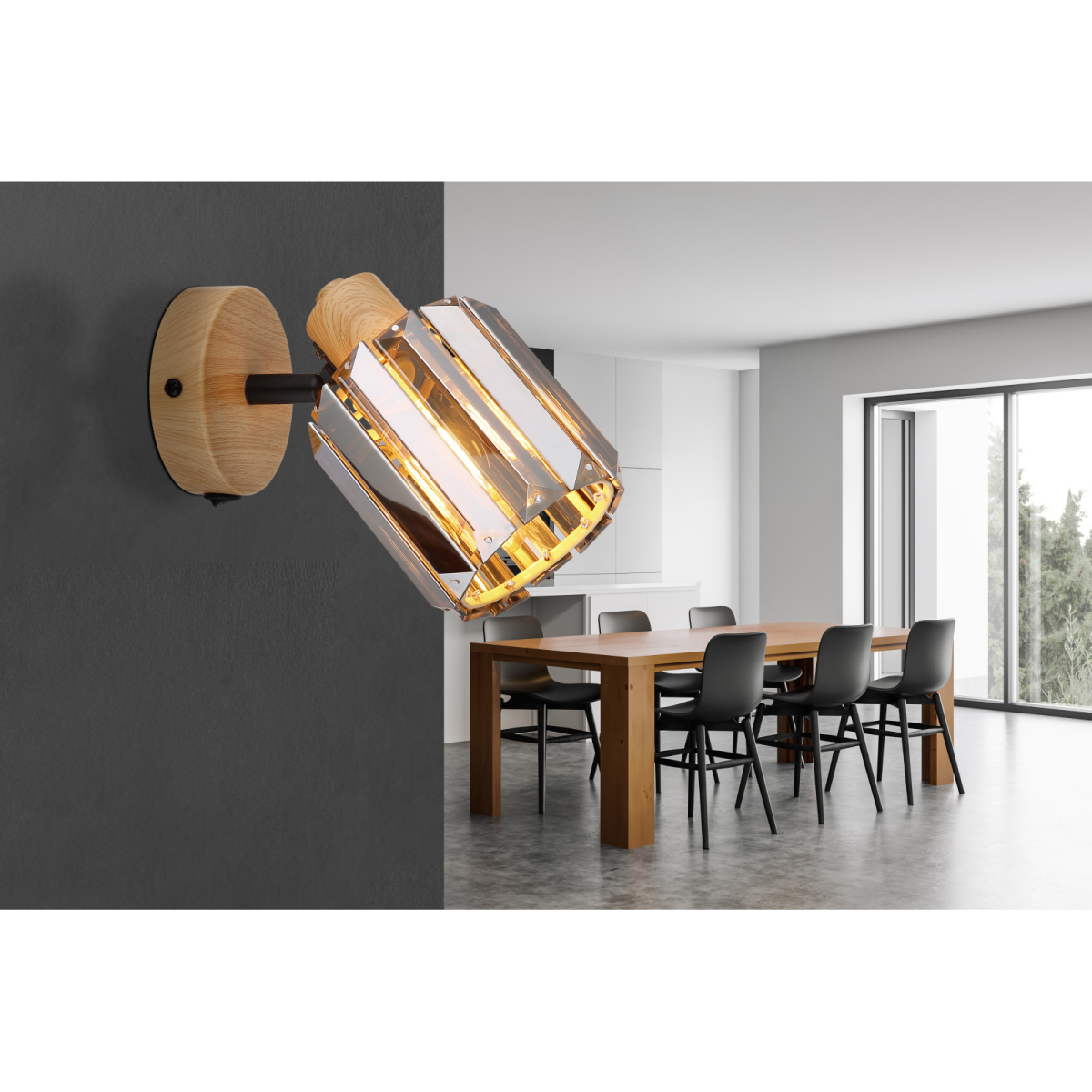 A fa megjelenésű fémből készült Run fali spotlámpa ideális célzott megvilágításhoz, és stílusos hangsúlyt fektet bármely helyiségbe. Kompakt méretével és magasságával tökéletesen illeszkedik különböző belső terekhez. A fa hatású fém és a füstszínű K5 kristályok kombinációja elegáns megjelenést biztosít. A lámpán található billenőkapcsoló lehetővé teszi a könnyű kezelést. Vigyél fényt és modern stílust otthonodba ezzel a praktikus fali lámpával.