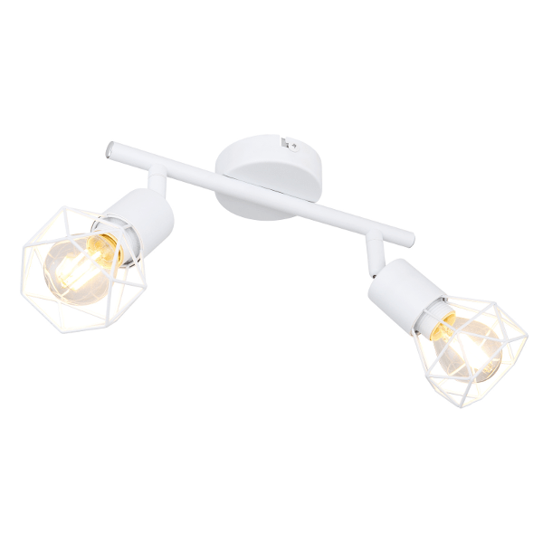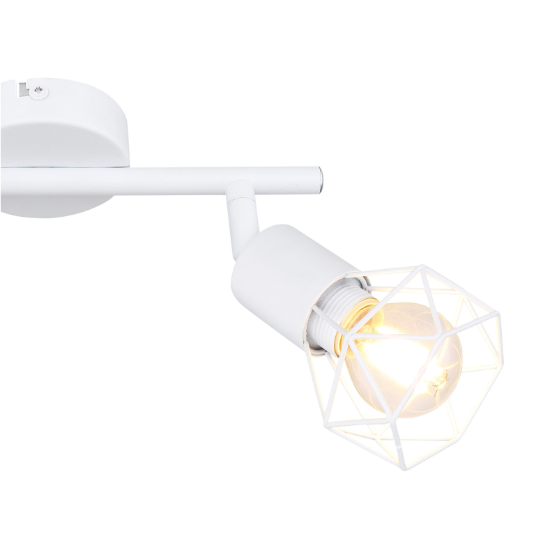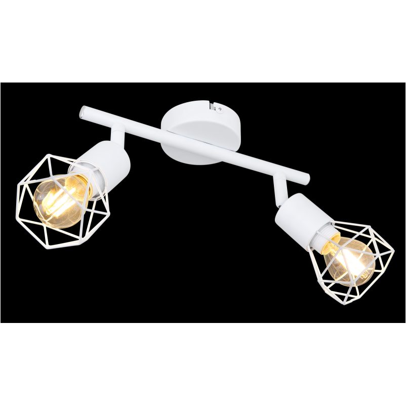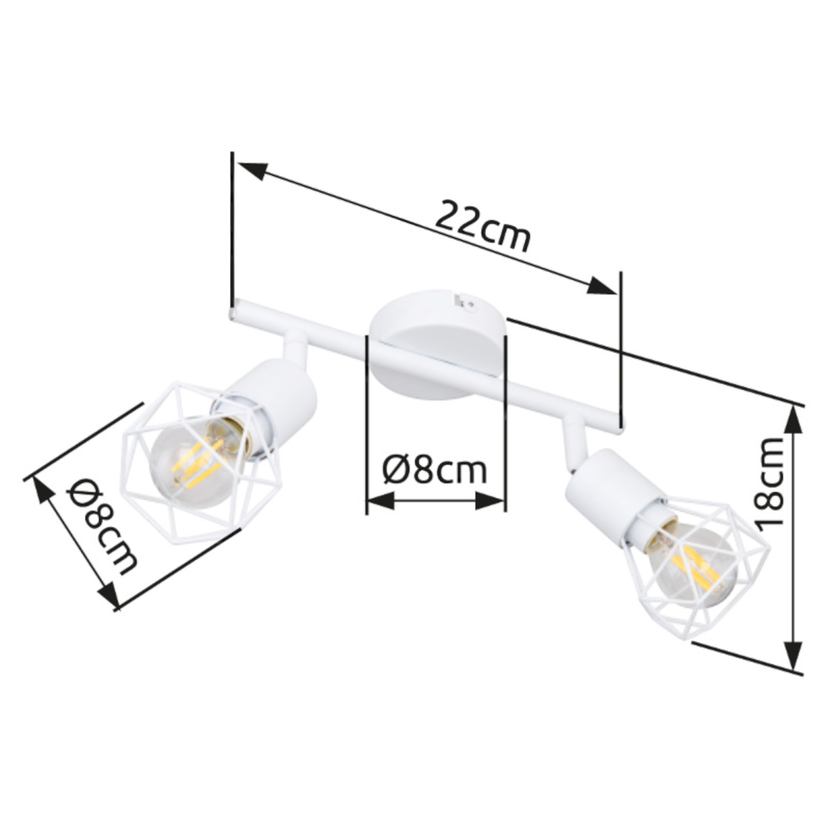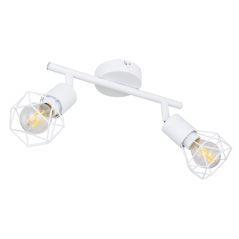 A spotlámpa gyémánt alakú fém ketrec burával rendelkezik. Mivel a bura drótból készült, így ennek köszönhetően a fény minden irányba egyenletesen szétárad. A lámpa 2 db E14-es foglalattal rendelkezik, 2 db maximum 40W teljesítményű fényforrással üzemeltethető.