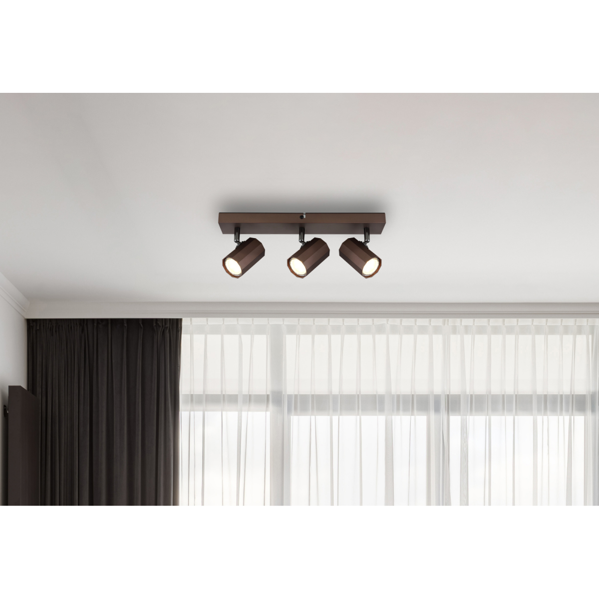 A GLOBO 57919-3 JAMES téglalap alakú spotlámpa ötvözi a technikai kifinomultságot a modern stílussal. A matt bronz színű fémtest korszerű esztétikát kölcsönöz, míg a matt bronz színű alumínium búra tökéletesen kiegészíti azt. A spotlámpa három GU10-es foglalattal lett ellátva, amelybe az izzókat Te választhatod meg (25W,230V).