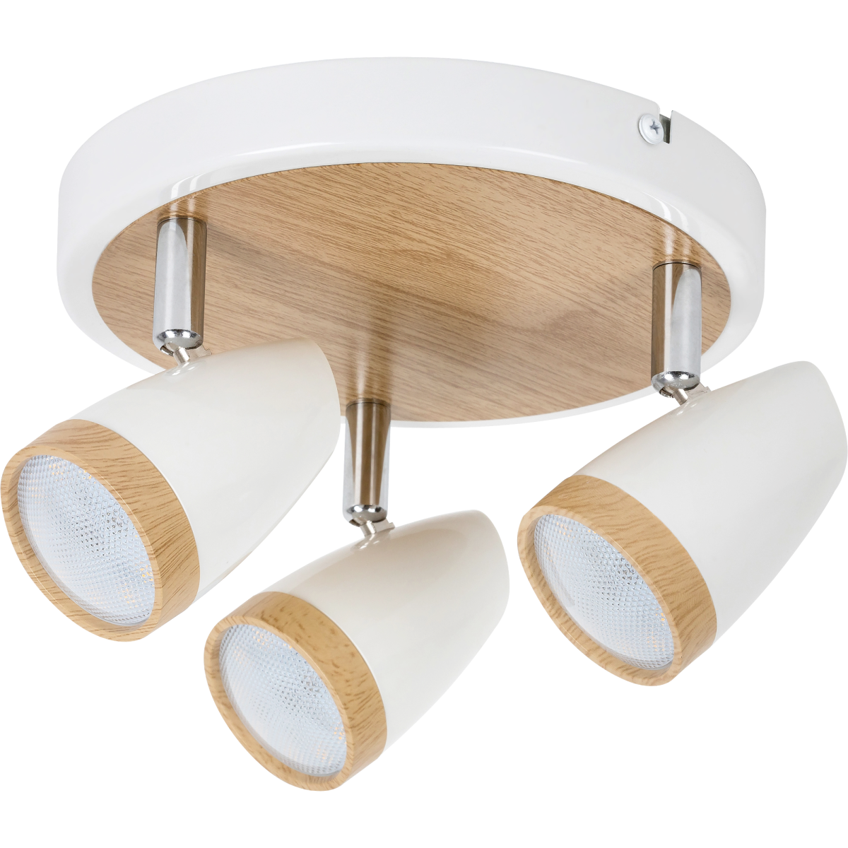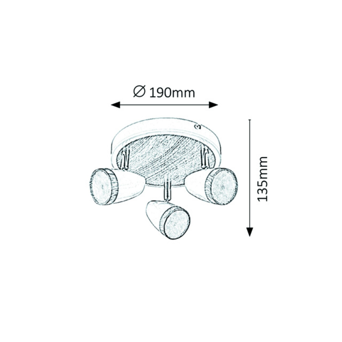 A Karen hármas spotlámpa melegséget árasztó, természetes megjelenésével nappalink vagy hálószobánk berendezésének meghatározó darabja lehet. A mennyezeti lámpa három lámpafeje 360 fokos, tökéletes megvilágítást biztosít a helyiségben, így nem lesz szükség kiegészítő fényforrásokra. Ez a hármas spot lámpa fehér/bükk színű, műanyag lámpaburával és dísztalppal készült. A lámpa méretei a következők: a dísztalp átmérője 190 mm, a lámpa mennyezettől mért távolsága 135 mm. A Karen hármas mennyezeti lámpa 3 db, egyenként 4 W teljesítményű, 280 lumen fényerejű, 3000 kelvines, melegfehér fényű, beépített LED fényforrással rendelkezik.