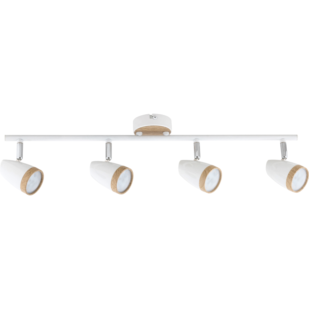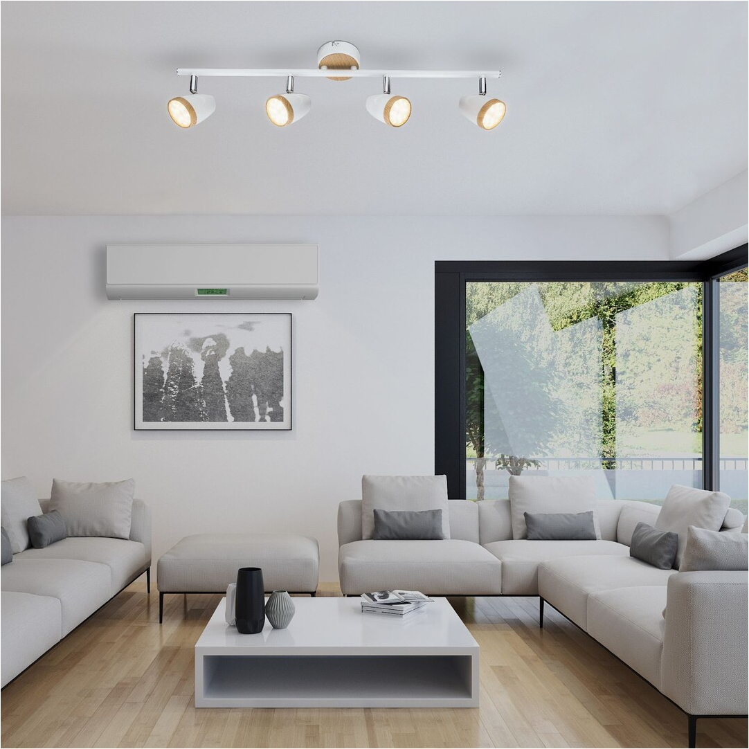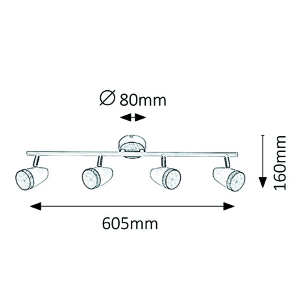 Természetes és egyszerűségében elegáns: a Karen négyes spotlámpa nem hagy megvilágítatlan sarkot egy tágasabb nappaliban sem. A beltéri lámpa négy lámpafeje tökéletes megvilágítást biztosít a helyiségben, így nem lesz szükség kiegészítő fényforrásokra. Ezt a modellt fehér/bükk színű műanyag lámpabúra és dísztalp teszi egyedivé. A négyes spot lámpa teljes szélessége 605 mm, mennyezettől mért távolsága 160 mm, a dísztalp átmérője 80 mm. A Karen négyes mennyezeti lámpa 4 db, egyenként 4 W teljesítményű, 280 lumen fényerejű, 3000 kelvines, melegfehér fényű, beépített LED fényforrással rendelkezik.