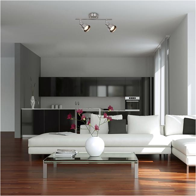 A modern stílusú Blake kettes spotlámpa a lakás számos helyiségébe jó választás lehet: felszerelhetjük a nappaliban, a hálószobában, de az étkezőben vagy akár a konyhában is. A teljes egészében fémből készült, szatinkróm színű lámpa kerek dísztalp segítségével rögzíthető a falra. Az állítható lámpafejek a dísztalphoz erősített vízszintes tartórúdon helyezkednek el. A Blake két darab, egyenként legfeljebb 50 W teljesítményű fényforrással használható, a foglalatok típusa GU10. Ízlésünktől és a felszerelés helyétől függően választhatunk hozzá meleg vagy természetes fehér fényű fényforrásokat.