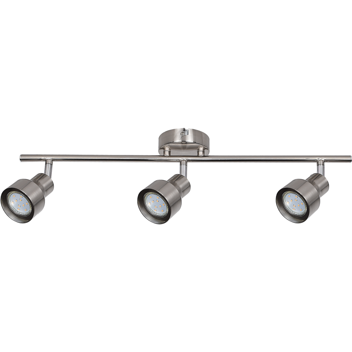 A modern stílusú Blake hármas spotlámpa a lakás számos helyiségébe jó választás lehet: felszerelhetjük a nappaliban, a hálószobában, de az étkezőben vagy akár a konyhában is. A teljes egészében fémből készült, szatinkróm színű lámpa kerek dísztalp segítségével rögzíthető a mennyezetre. Az állítható lámpafejek a dísztalphoz rögzített vízszintes tartórúdon helyezkednek el, segítségükkel könnyen bevilágíthatjuk az egész szobát. A Blake három darab, egyenként legfeljebb 50 W teljesítményű fényforrással használható, a foglalatok típusa GU10. Ízlésünktől és a felszerelés helyétől függően választhatunk hozzá meleg vagy természetes fehér fényű fényforrásokat.