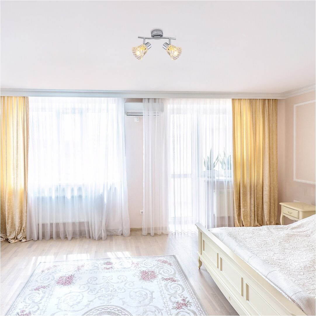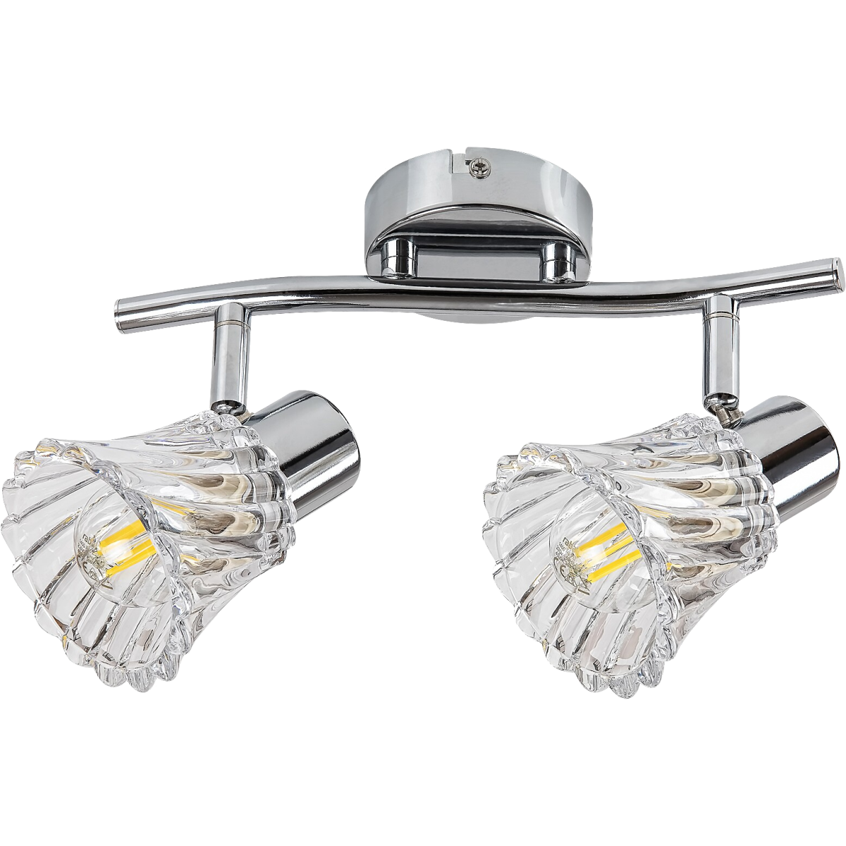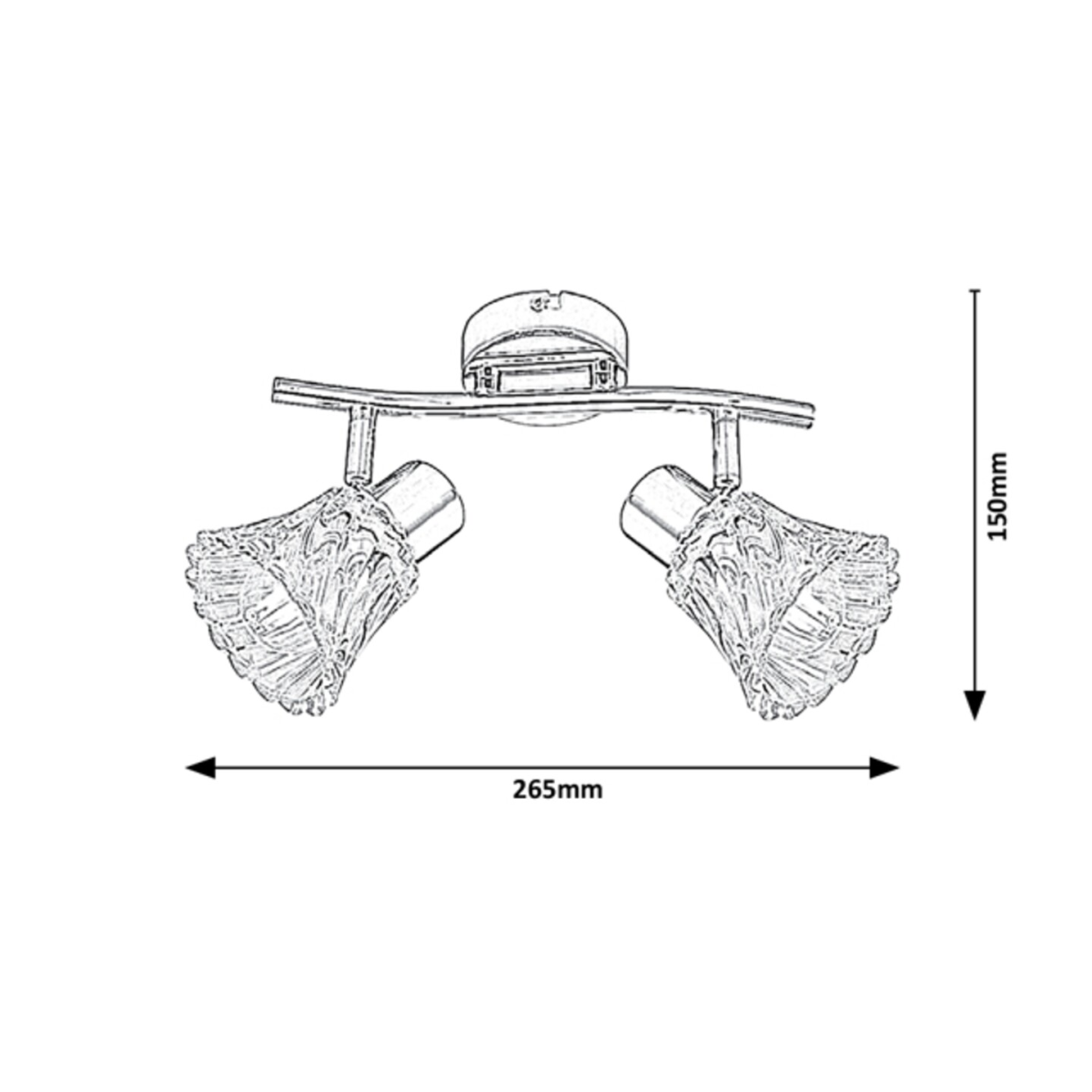 A klasszikus stílusban készült Hestia kettes spotlámpa nappalink vagy hálószobánk berendezésének elegáns darabja lehet. A krómszínű, fém lámpatestet átlátszó üvegbúrák egészítik ki, a lámpa kerek dísztalp segítségével rögzíthető a mennyezetre. A harang alakú búrák érdekességét hullámzó felületük csavart hatása adja. A Hestia két darab, egyenként legfeljebb 40W teljesítményű fényforrással használható, a foglalatok típusa E14. Ha a meghitt, otthonos hangulatot szeretnénk erősíteni, válasszunk hozzá meleg fehér fényű fényforrásokat. A Hestia kettes spot lámpa méretei a következők: szélessége 265 mm, magassága 135 mm, mennyezettől mért távolsága 150 mm.