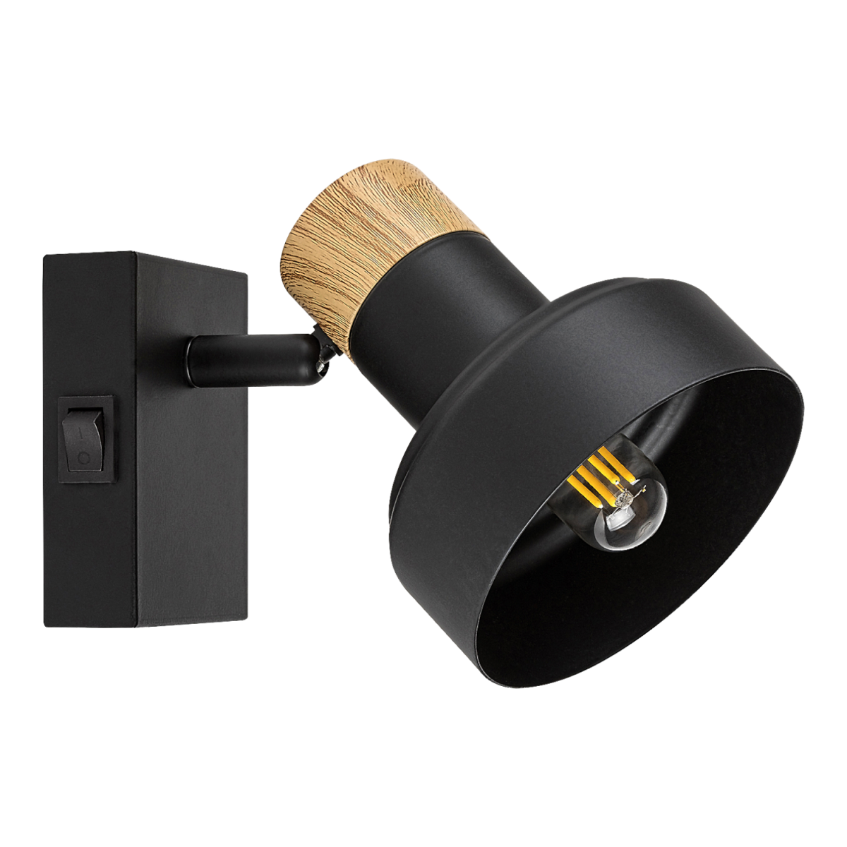 A Rábalux Saskia fali spotlámpa a skandináv stílus letisztult eleganciáját és a természetes fa melegségét ötvözi. Fekete fém testét tölgy színű kupak egészíti ki, a búra aranyszínű belső felülete pedig különleges hangulatot teremt. A lámpa állítható fejének köszönhetően a fény mindig a kívánt irányba állítható, míg a dísztalpon található billenőkapcsoló egyszerű és kényelmes használatot biztosít.