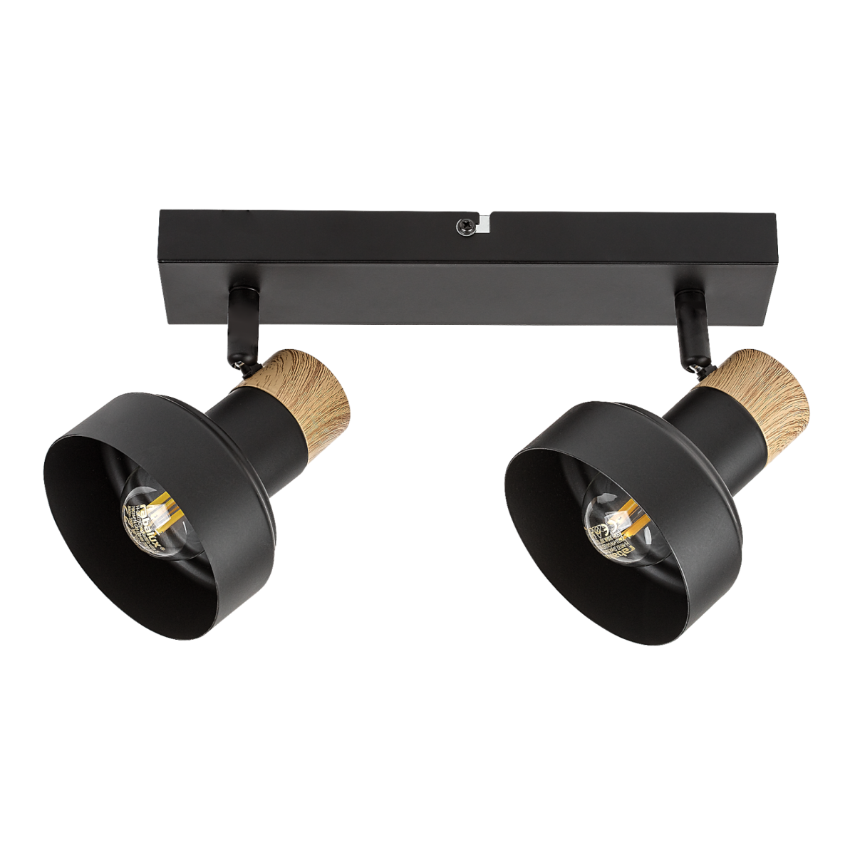 A Rábalux Saskia kettes spotlámpa a skandináv stílus egyszerűségét és a természetes fa melegségét ötvözi. A fekete fémből készült testet tölgy színű kupakok díszítik, míg az aranyszínű búrabelső elegáns fényhatást ad.
