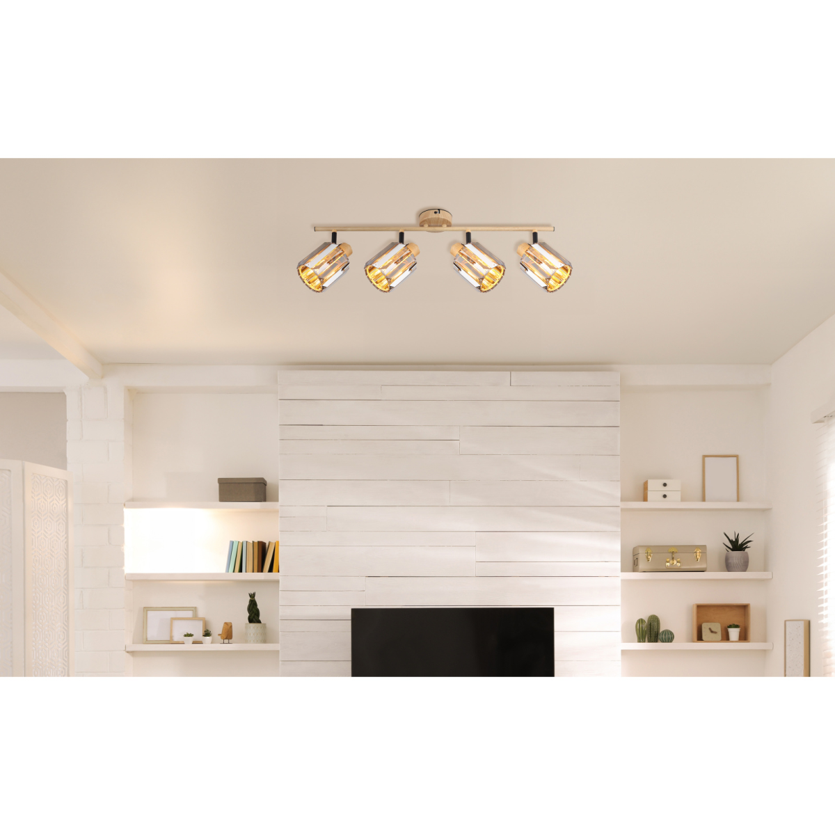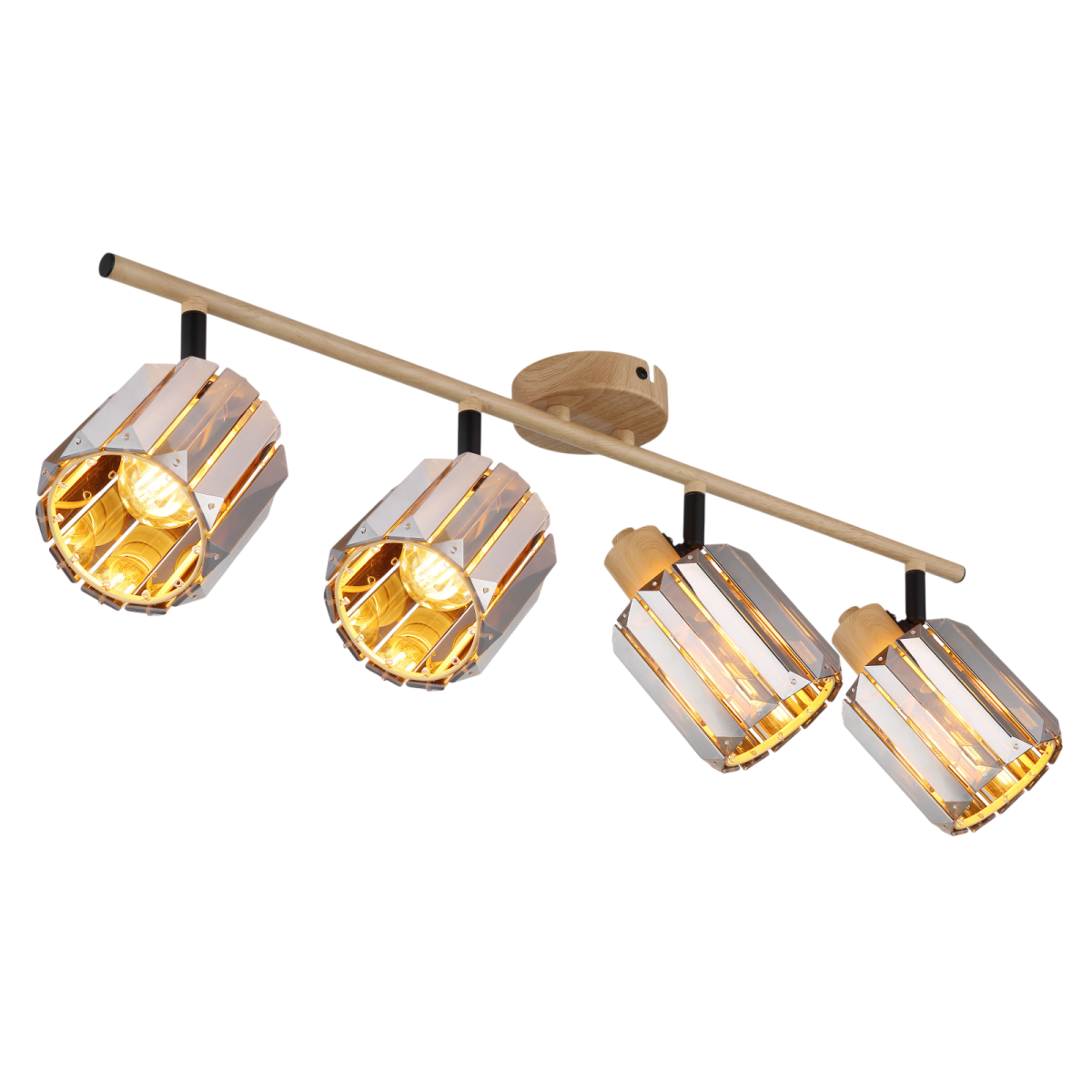 A Run fa megjelenésű fémből készült mennyezeti spotlámpa egy rugalmas és stílusos világítási megoldás otthonába. Kompakt méreteivel, és az elfordítható spotjaival célzott megvilágítást biztosít bármely helyiségben. A fa megjelenésű fém és a füstszínű K5 kristályok kombinációja elegáns és modern megjelenést kölcsönöznek. Ideális választás a nappaliba vagy az étkezőbe. Vigyen fényt és modern stílust otthonába ezzel a praktikus mennyezeti lámpával.