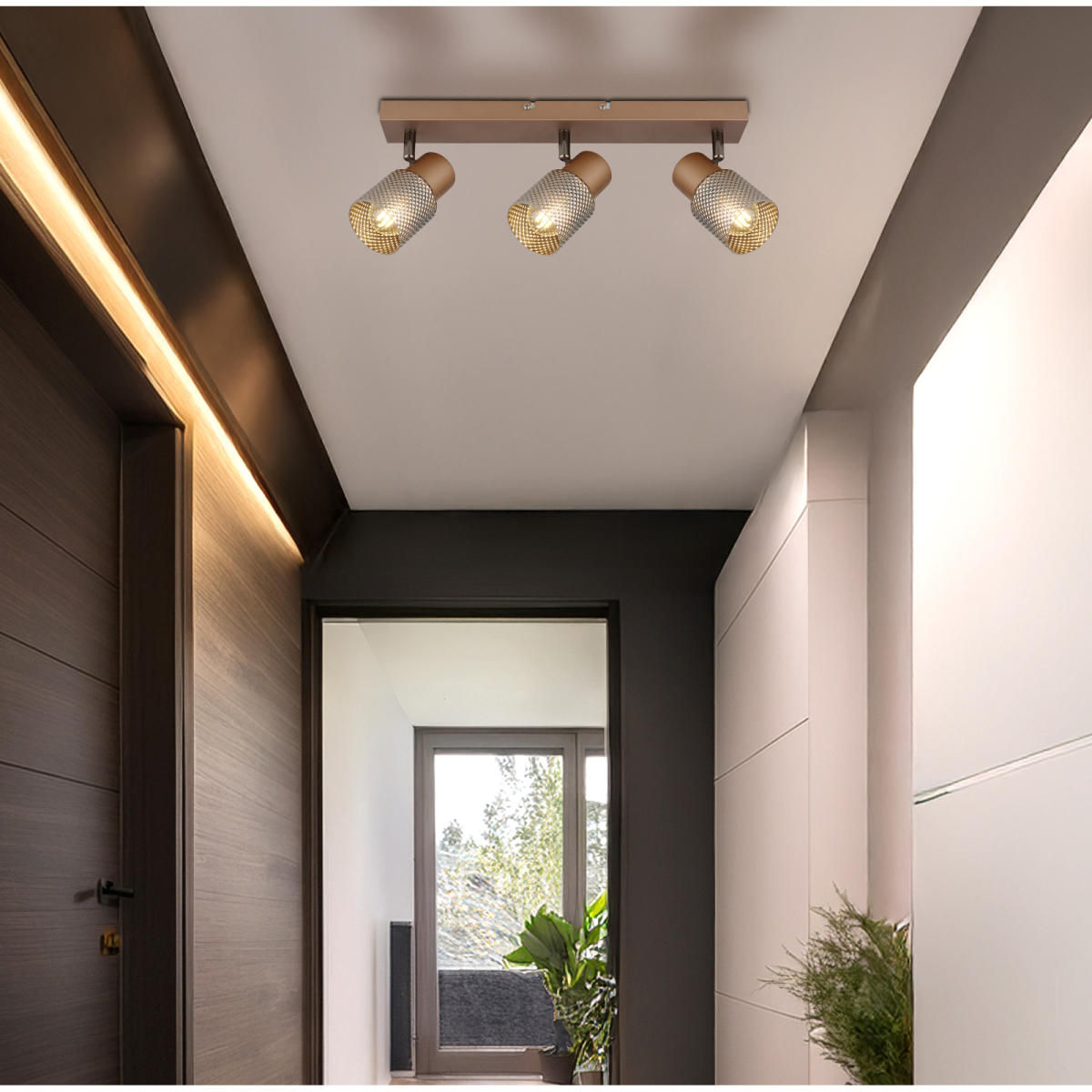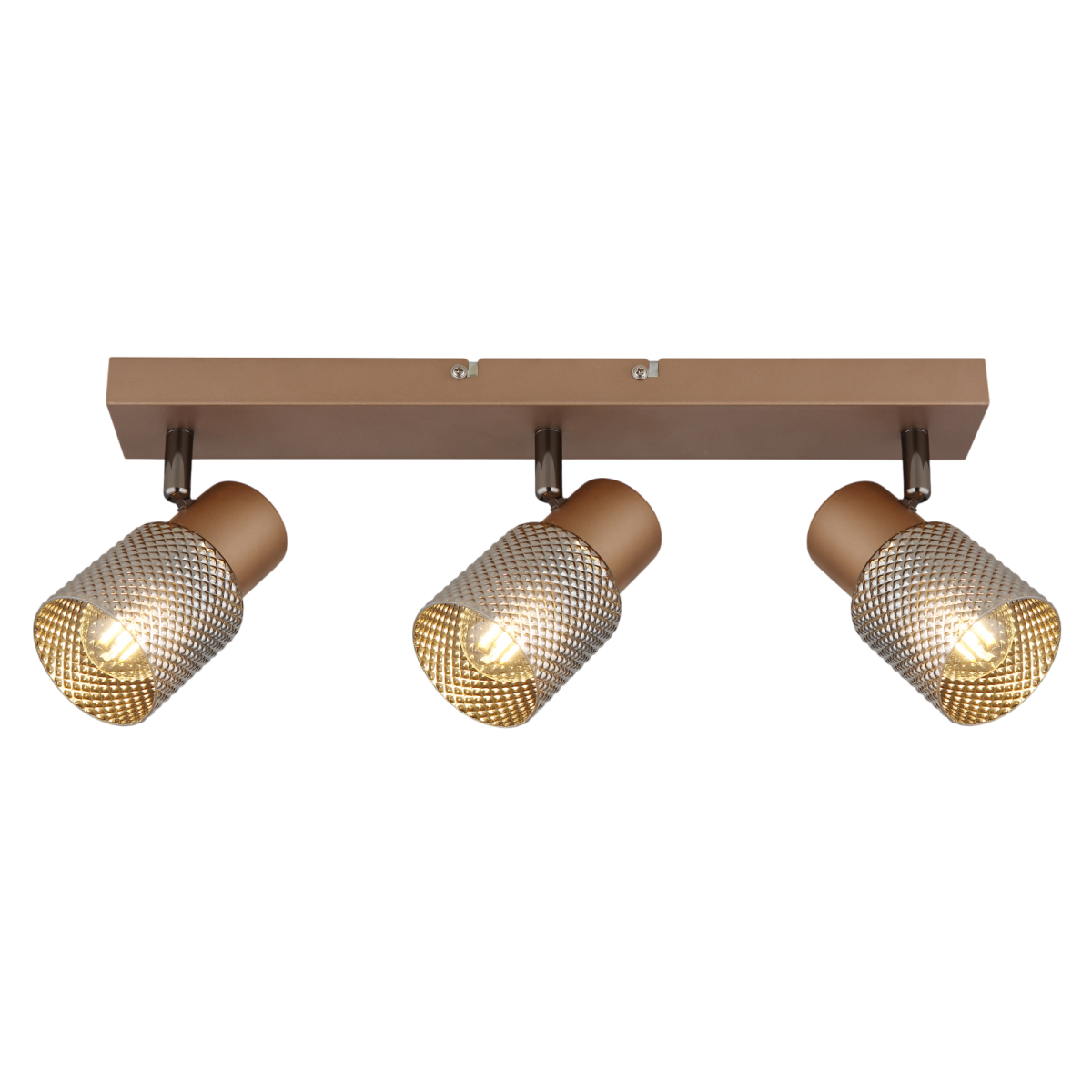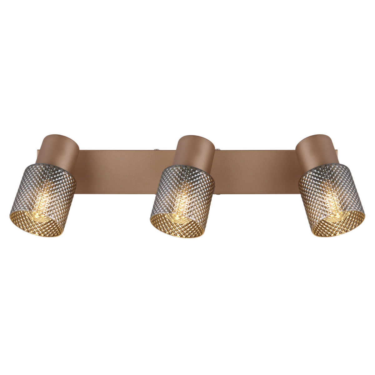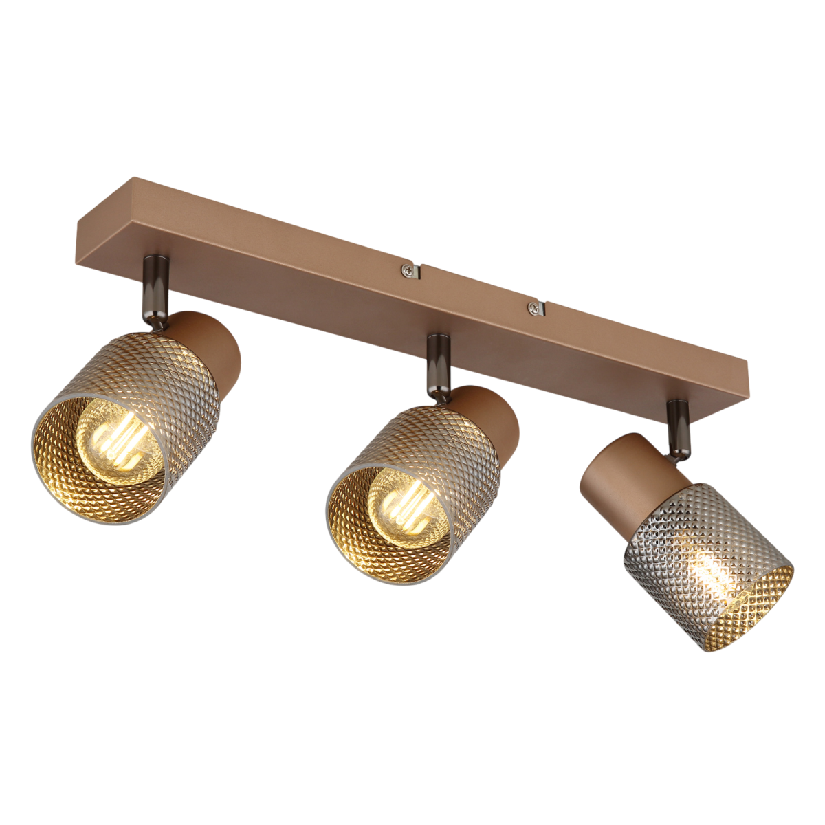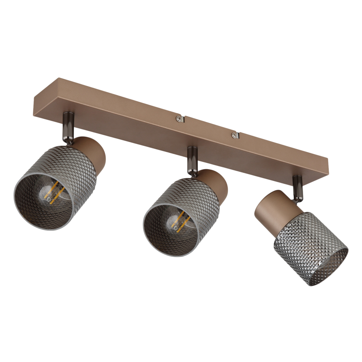A Satella mennyezeti spotlámpa lenyűgöz modern és elegáns kialakításával. A négyszögletes test és a három henger alakú búra stílusos megjelenést kölcsönöz. A kávészínű fémből készült, matt felületű test fekete krómmal kombinálva igényes megjelenést és harmonikus összhatást biztosít. A füstszínű üvegből készült kristály hatású hengeres búrák eleganciát kölcsönöznek, és különleges fényeloszlást hoznak létre. Tökéletes a nappali, a hálószoba vagy a folyosó célzott megvilágítására. Hozz egyedi fényt otthonodba ezzel a ragyogó mennyezeti lámpával.