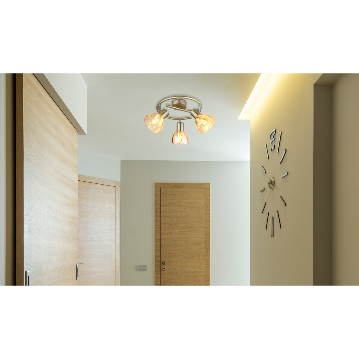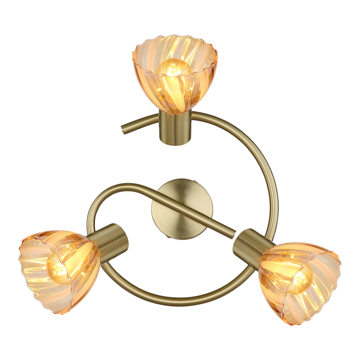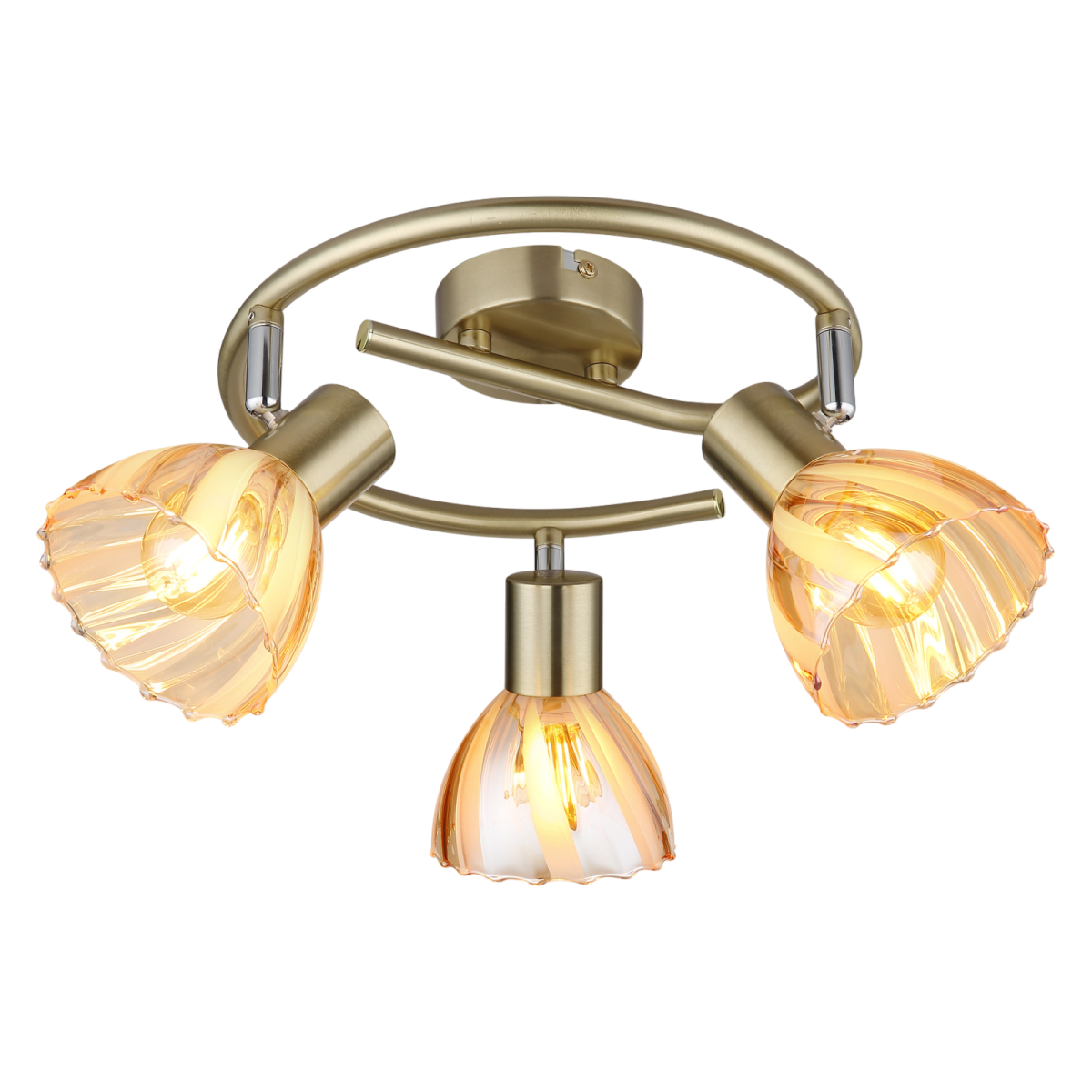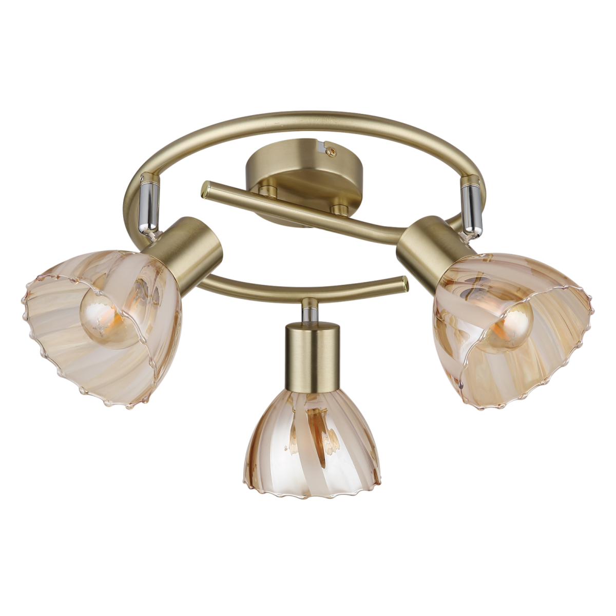 A Zachery mennyezeti spotlámpa az elegáns dizájnt ötvözi a funkcionális világítással. A hajlított szerkezete, és a dekoratív barázdákkal díszített kerek búrák különleges megjelenést adnak ennek a lámpának, amely minden helyiségben szemet gyönyörködtető lesz. A sárgaréz színű, matt fémből és krómból készült test kifinomult jelleget ad, és harmonikusan beleolvad a különböző belsőépítészeti stílusokba. A szatén bevonatú, borostyán színű üvegből készült búrák meleg, hangulatos fényt hoznak létre. A 460 mm átmérőjű Zachery spotlámpa egyenletes és célzott megvilágítást biztosít.