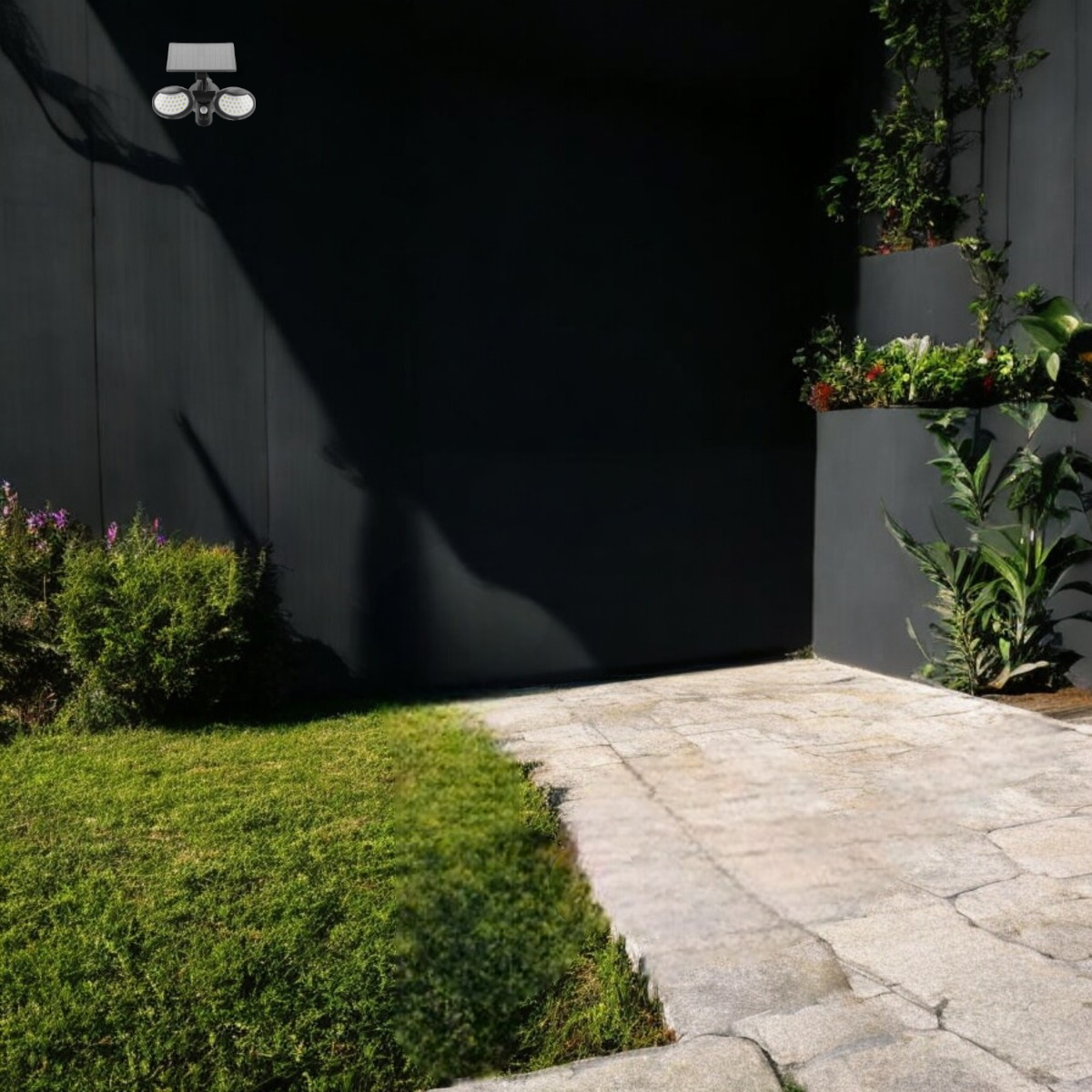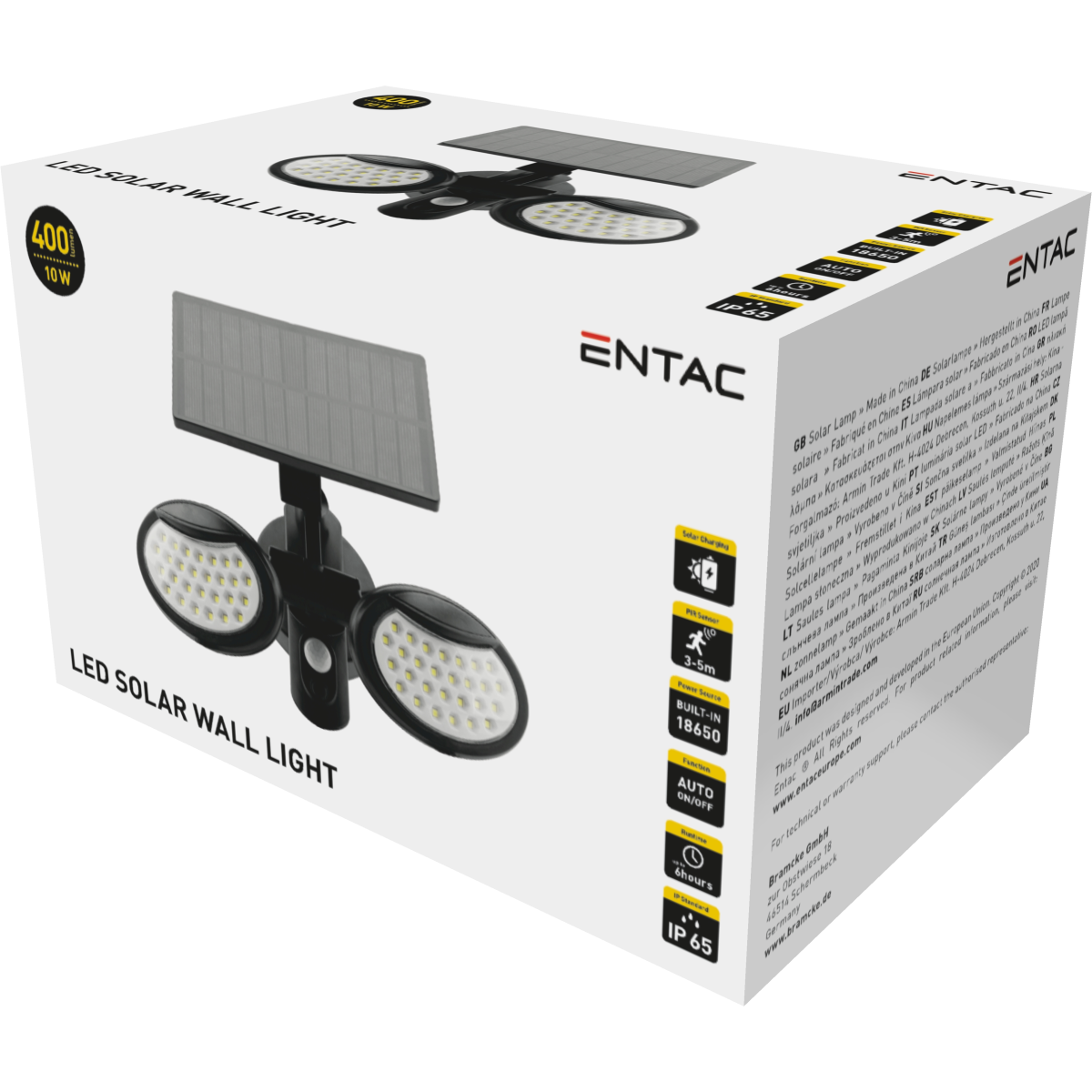 Entac LED Napelemes fali lámpa két forgatható lámpafejjel, mozgásérzékelővel és napelemmel.