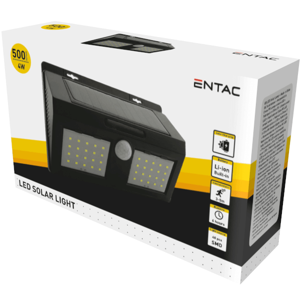 Entac napelemes lámpa 4w 500lm ip65 fény- és mozgásérzékelővel