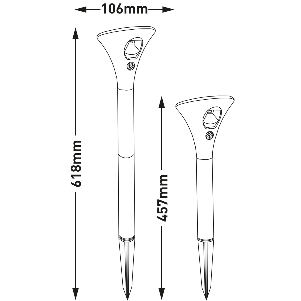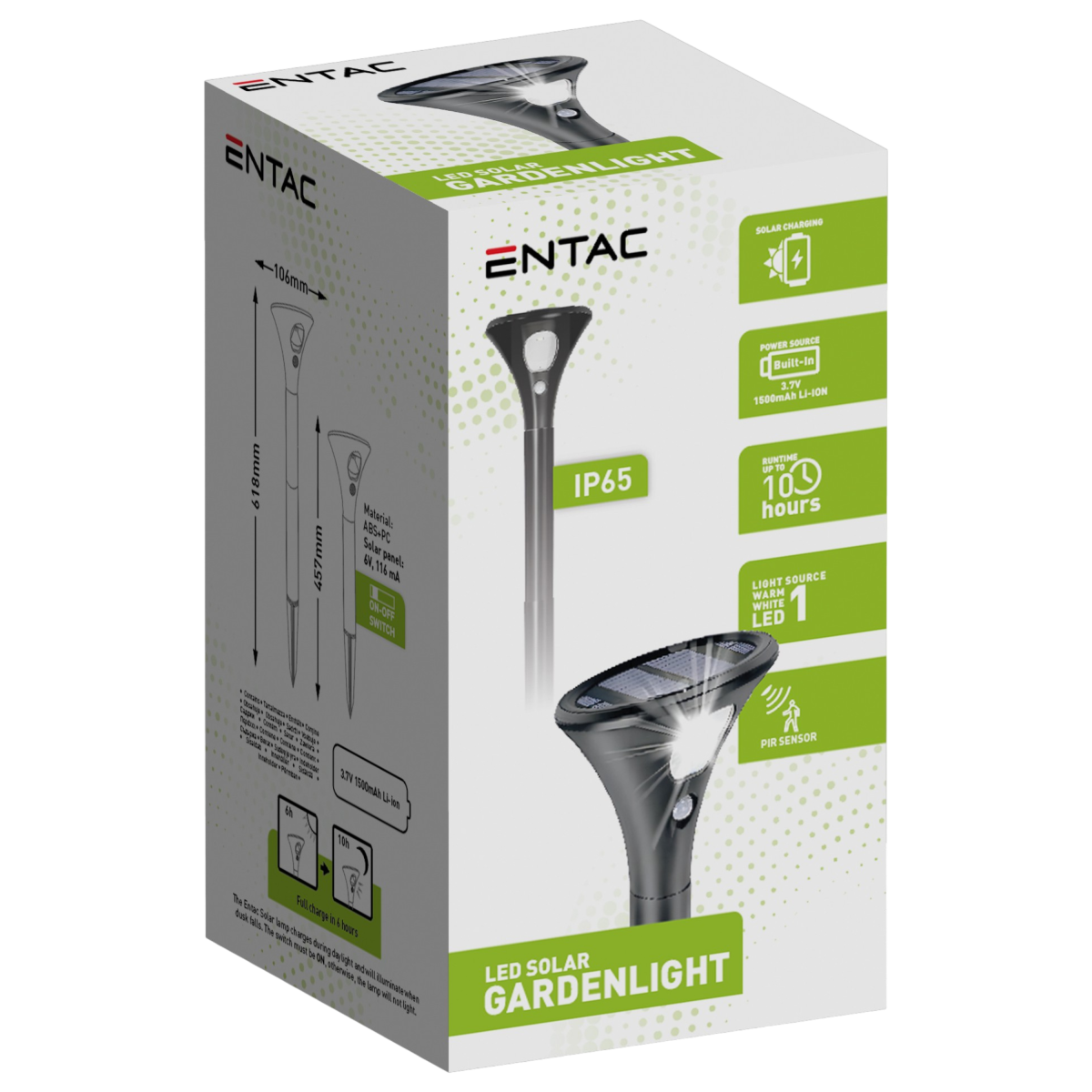 Az Entac leszúrható szolár LED lámpa erősebb fényű, funkcionális megoldás kerti és kültéri megvilágításhoz. A dekoratív forma praktikus világítással párosul: a beépített napelem nappal feltölti az akkumulátort, sötétedés után pedig a lámpa automatikusan bekapcsol, kellemes melegfehér (WW) fénnyel. Kábelezés nélkül, energiatakarékosan működik, az IP65 védelem pedig megbízható kültéri használatot biztosít.