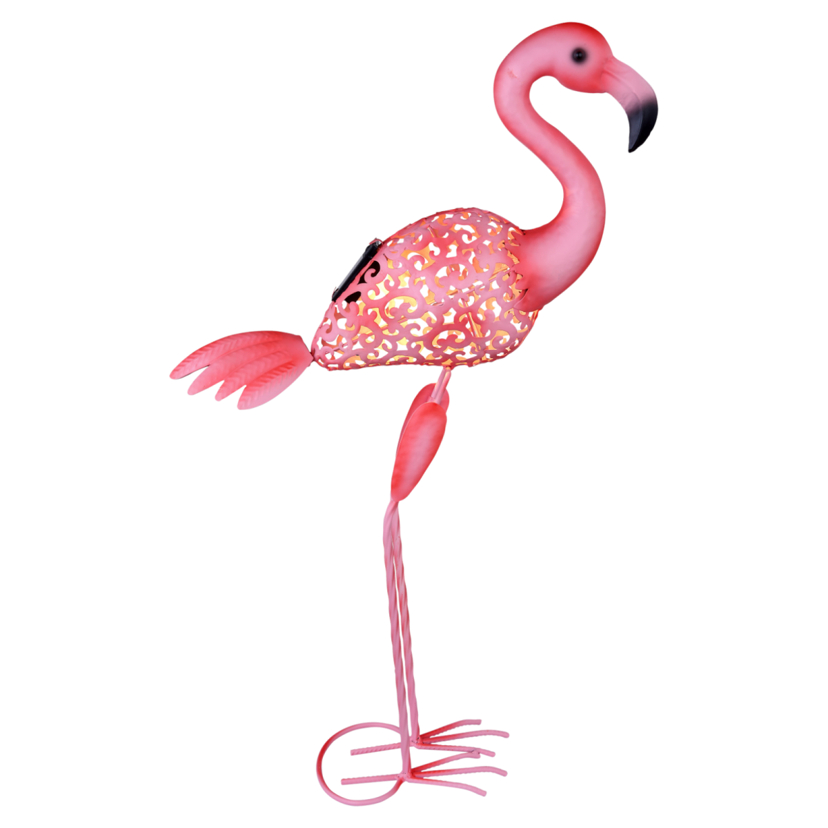 Ez a rózsaszín, flamingó alakú szolár LED lámpa különleges és vidám hangulatot visz bármely kertbe vagy teraszra. Fémből készült dekoratív teste nemcsak mutatós kerti dísz, hanem praktikus fényforrás is, amely sötétedés után automatikusan életre kel.