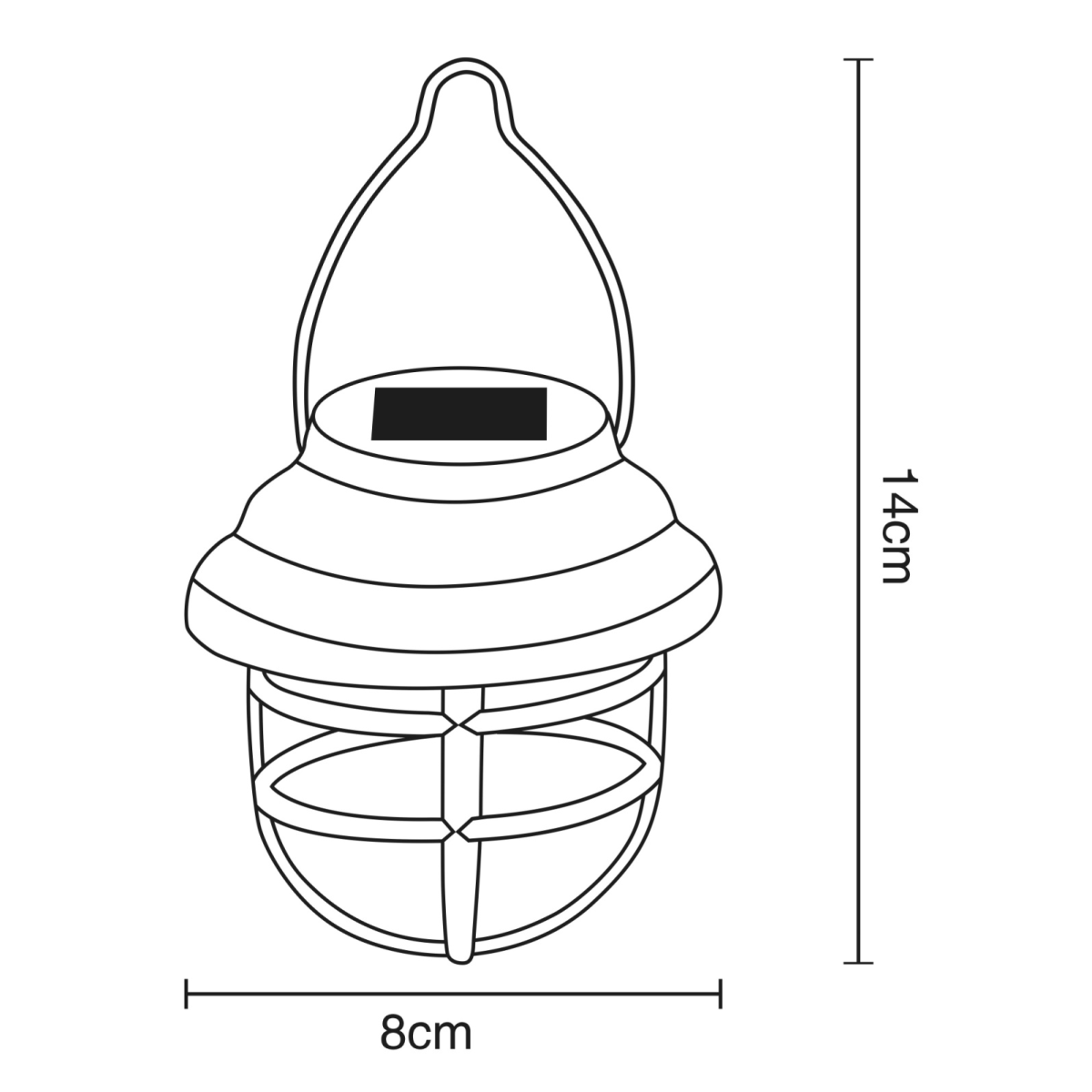 Függeszthető szolár lámpás, mely kertekbe, teraszokra tökéletes választás; 200 mAh Ni-Mh akkumulátorral; 1xAAA elemmel működik.