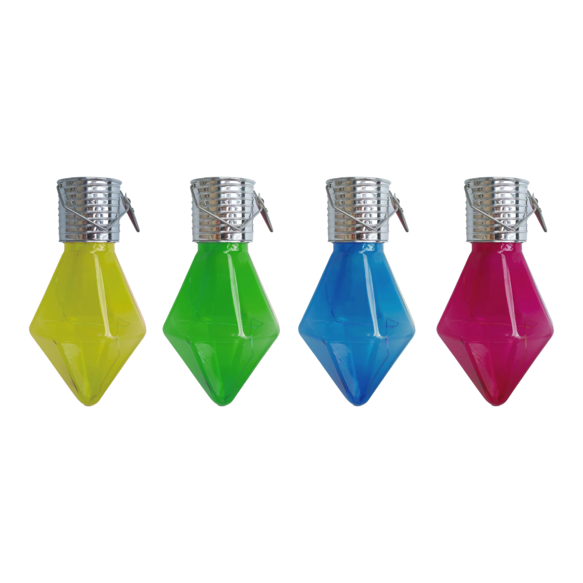 Műanyagból készült függeszthető LED szolár lámpa, ki-/bekapcsolóval, IP44 védettséggel, kültéri használatra, 1 db 1,2V, 40 mAh Ni-MH gombakkuval.