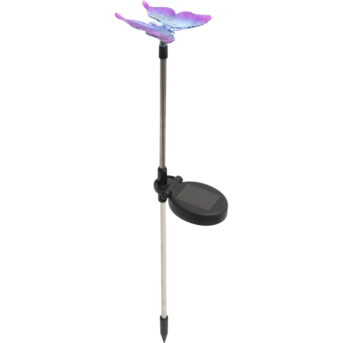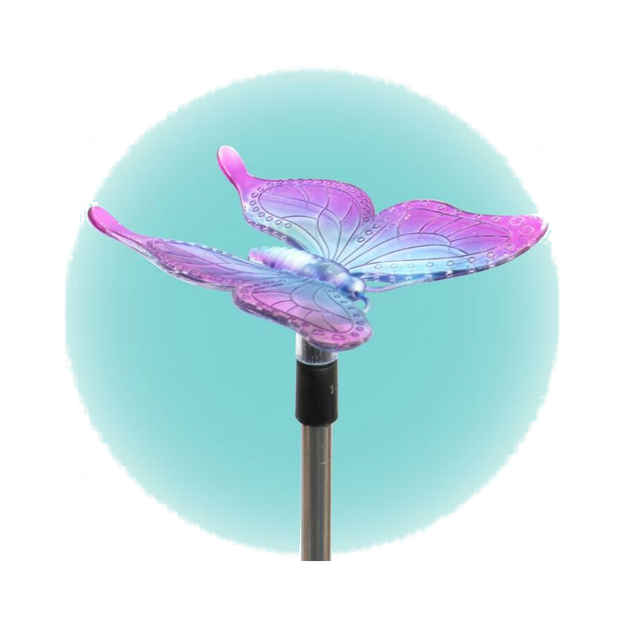 A pillangó figurával a tetején vidám kiegészítője lehet a virágágyásoknak is.