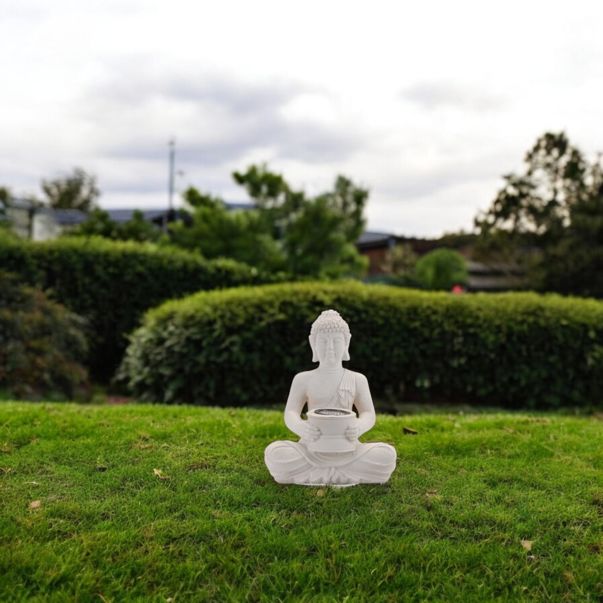 Ez a fehér színű Buddha kerti figura harmonikus megjelenésével és visszafogott LED világításával nyugodt, meditatív hangulatot teremt a kertben vagy a teraszon. A beépített szolár egység nappal tölti az akkumulátort, sötétedés után pedig finom fényt biztosít, külön vezetékezés nélkül. A polisztón anyag részletgazdag kidolgozást és kültéri használatra alkalmas kialakítást tesz lehetővé.