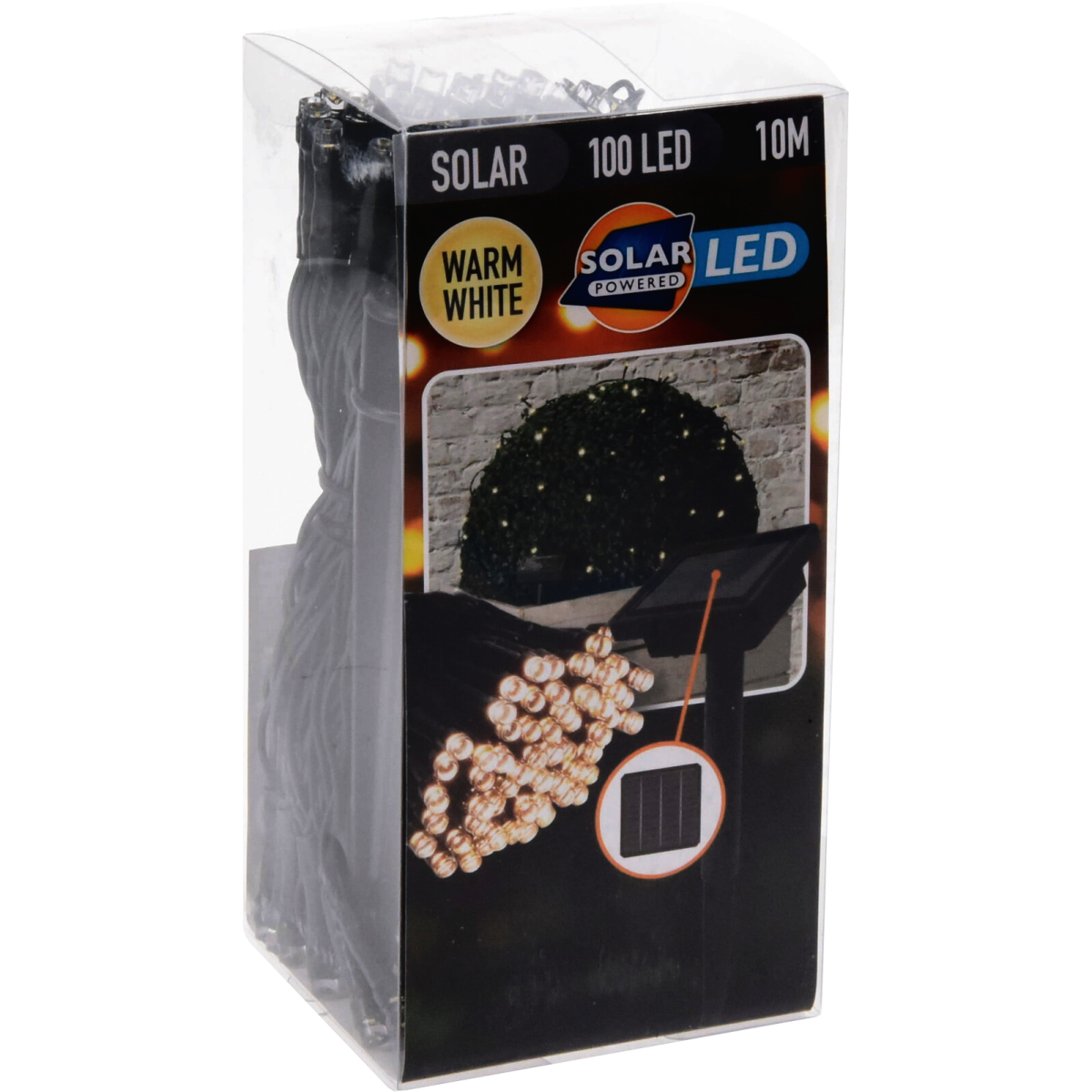 10 méter hosszú és 100 db meleg fehér színű LED-et tartalmaz.