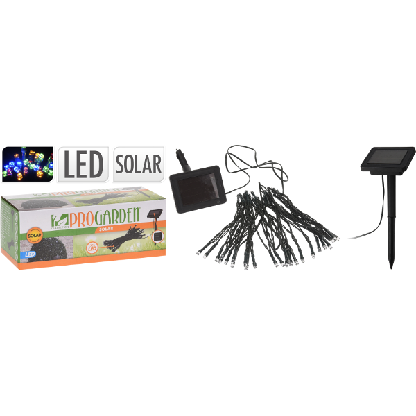 Szolár fényfüzér 5m hosszú 2m kábel, 50db szolár égővel,