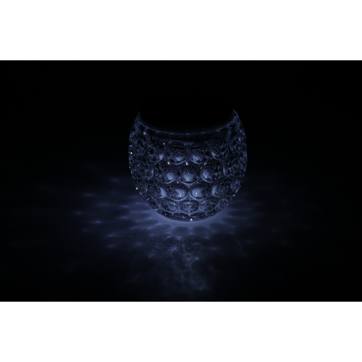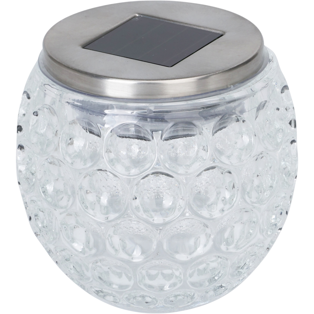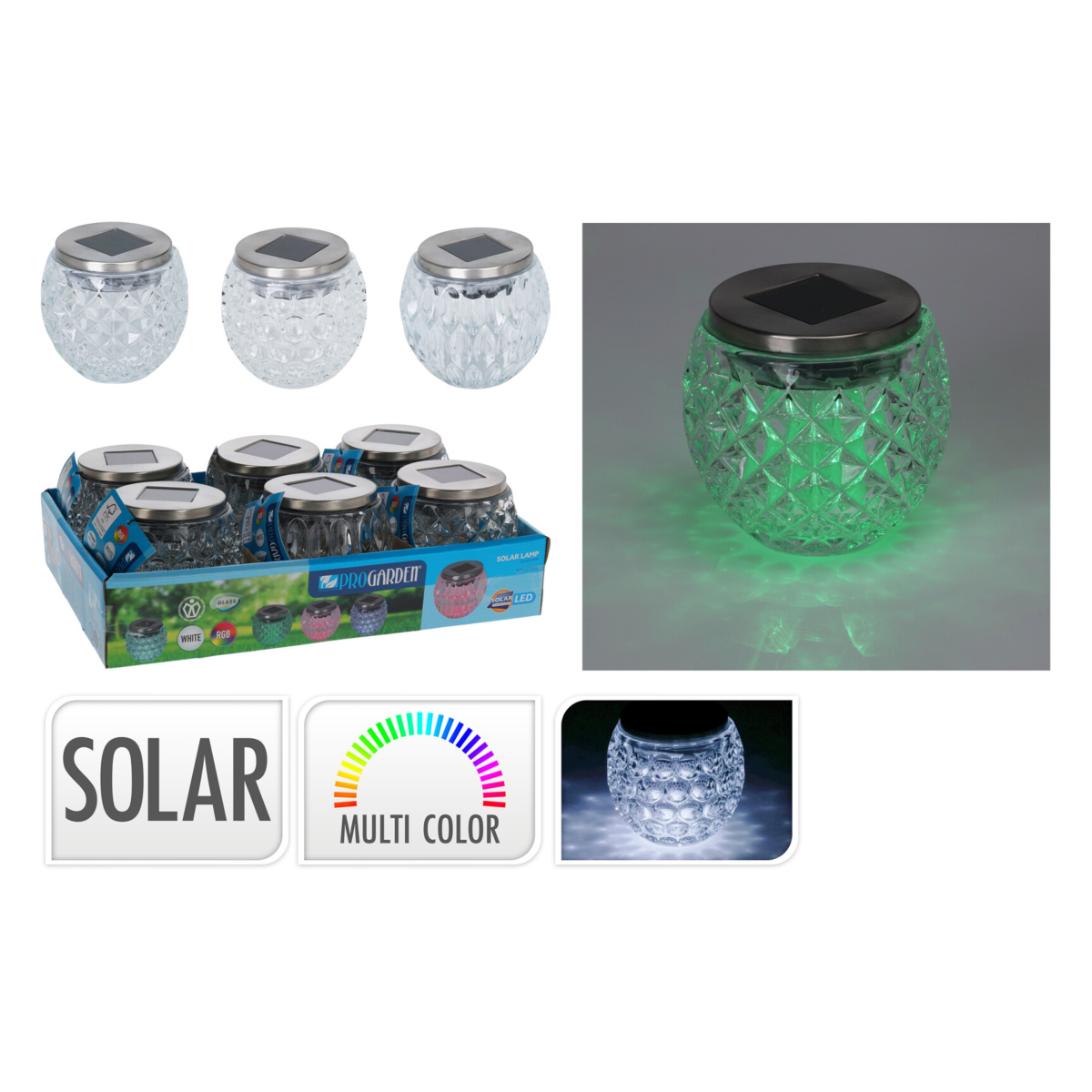 Ez a szolár LED-es asztali üveglámpa egy modern és energiatakarékos választás, amely 10 cm x 6 cm x 6 cm-es méretével kellemes hangulatot teremt bármilyen asztalon. Az amorf napelemmel és beépített hideg fehér, valamint RBG LED-del különleges hangulatot teremt beltéren és kültéren egyaránt. Az 1 db 1.2 V-os tölthető Ni-MH elemmel működő lámpa praktikus be- és kikapcsolóval rendelkezik. Az 1.2 V-os elemet a termék tartalmazza.