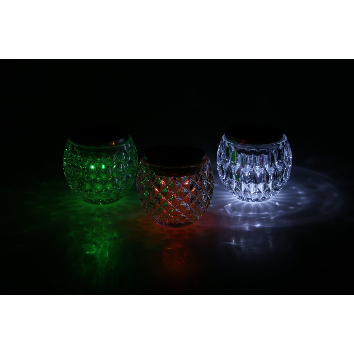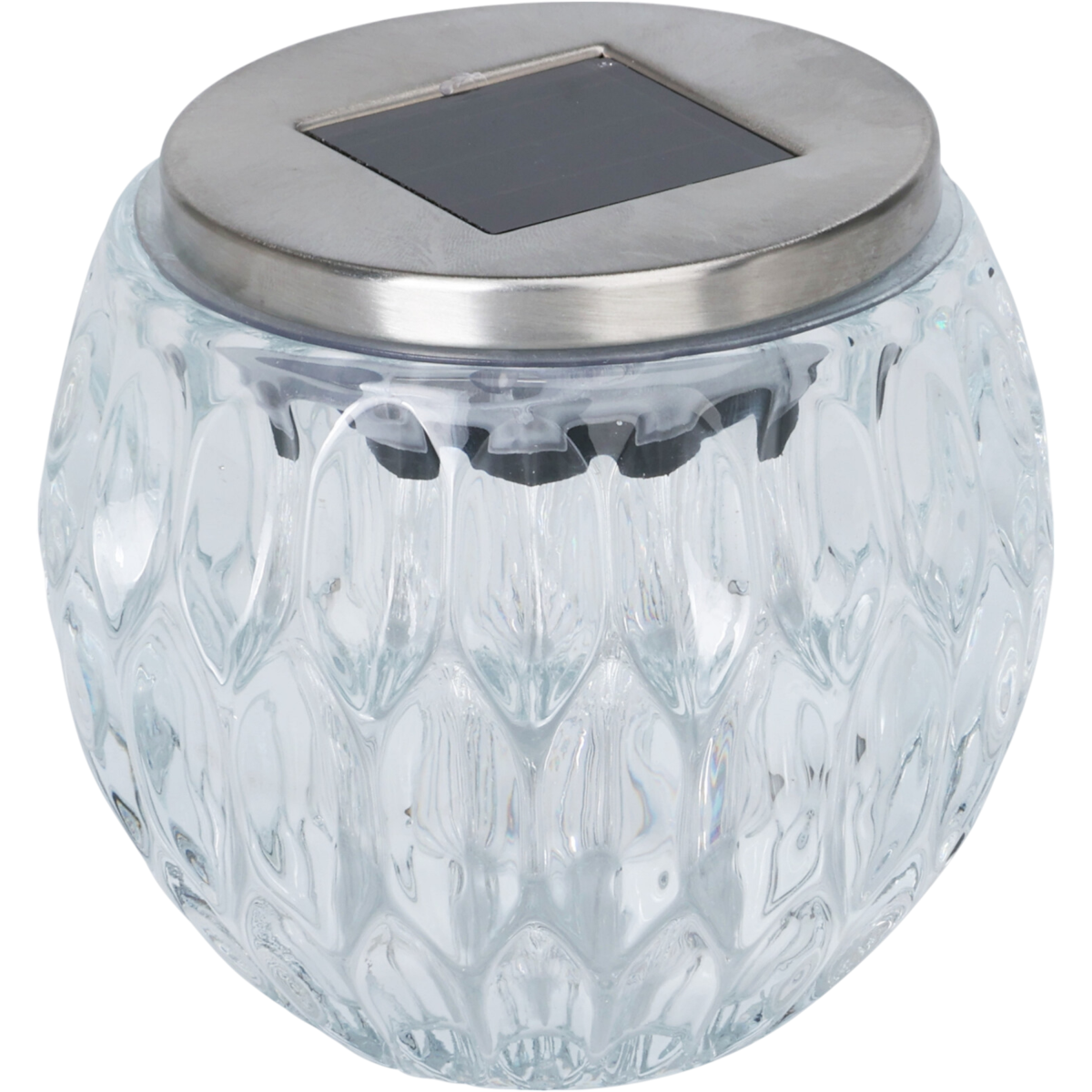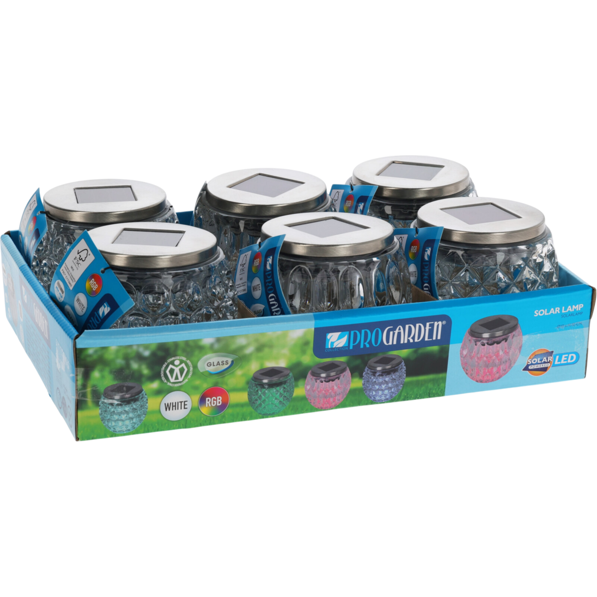 Ez a szolár LED-es asztali üveglámpa egy modern és energiatakarékos választás, amely 10 cm x 6 cm x 6 cm-es méretével kellemes hangulatot teremt bármilyen asztalon. Az amorf napelemmel és beépített hideg fehér, valamint RBG LED-del különleges hangulatot teremt beltéren és kültéren egyaránt. Az 1 db 1.2 V-os tölthető Ni-MH elemmel működő lámpa praktikus be- és kikapcsolóval rendelkezik. Az 1.2 V-os elemet a termék tartalmazza.