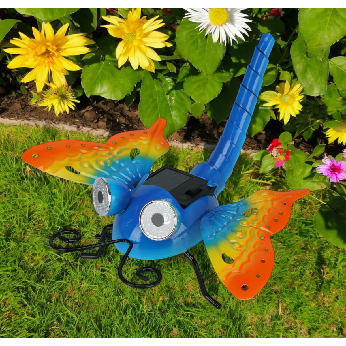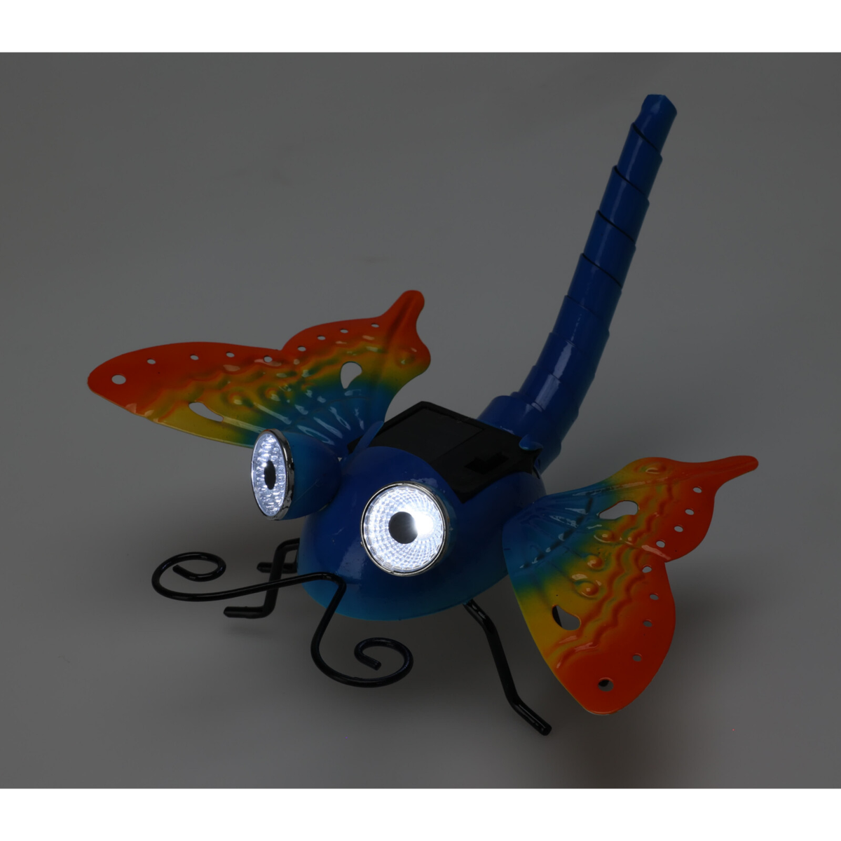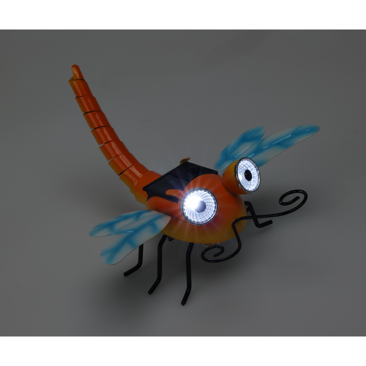 Ez a játékos megjelenésű, rovar formájú szolár kerti figura nappal színes dekorációként, este pedig hangulatos fényforrásként működik. A LED-világítás a figurák „szemeiben” kapott helyet, így sötétedés után különleges, mosolyt csaló látványt nyújt. Fém kivitelének köszönhetően stabil és tartós megoldás kültéri használatra.
