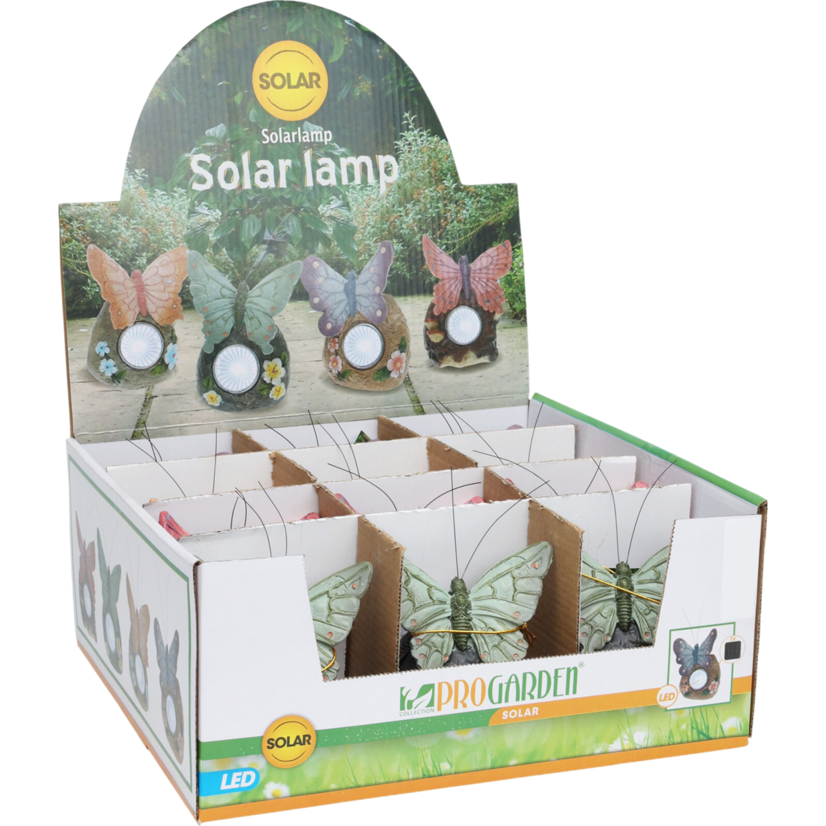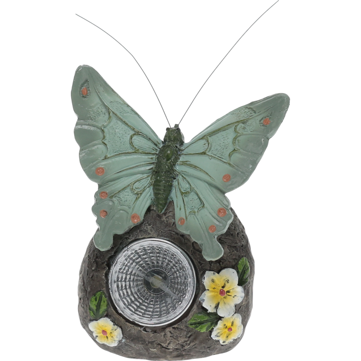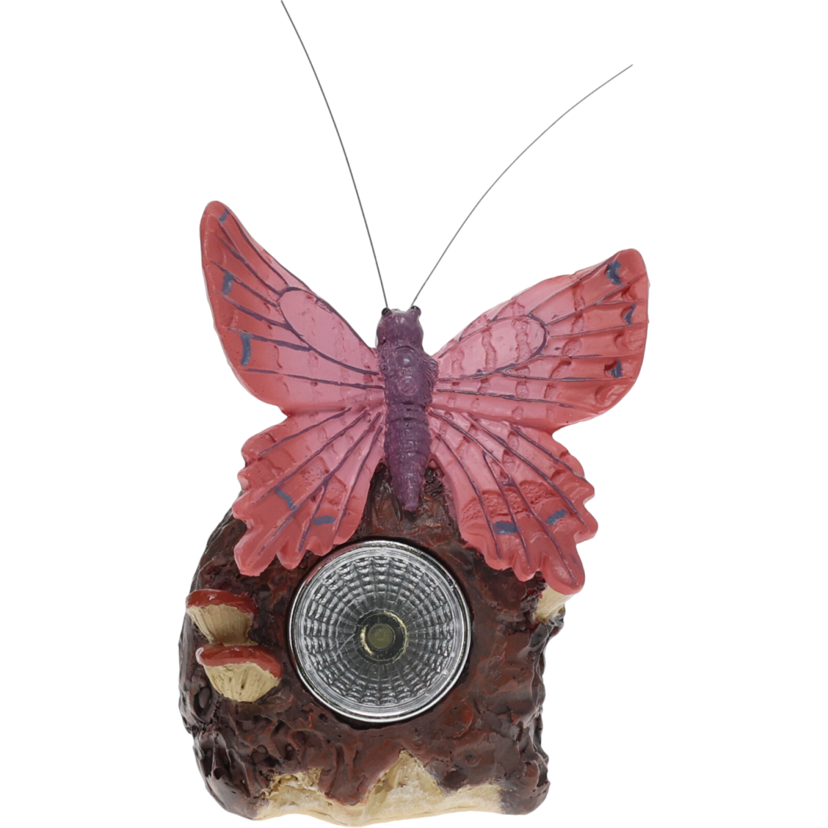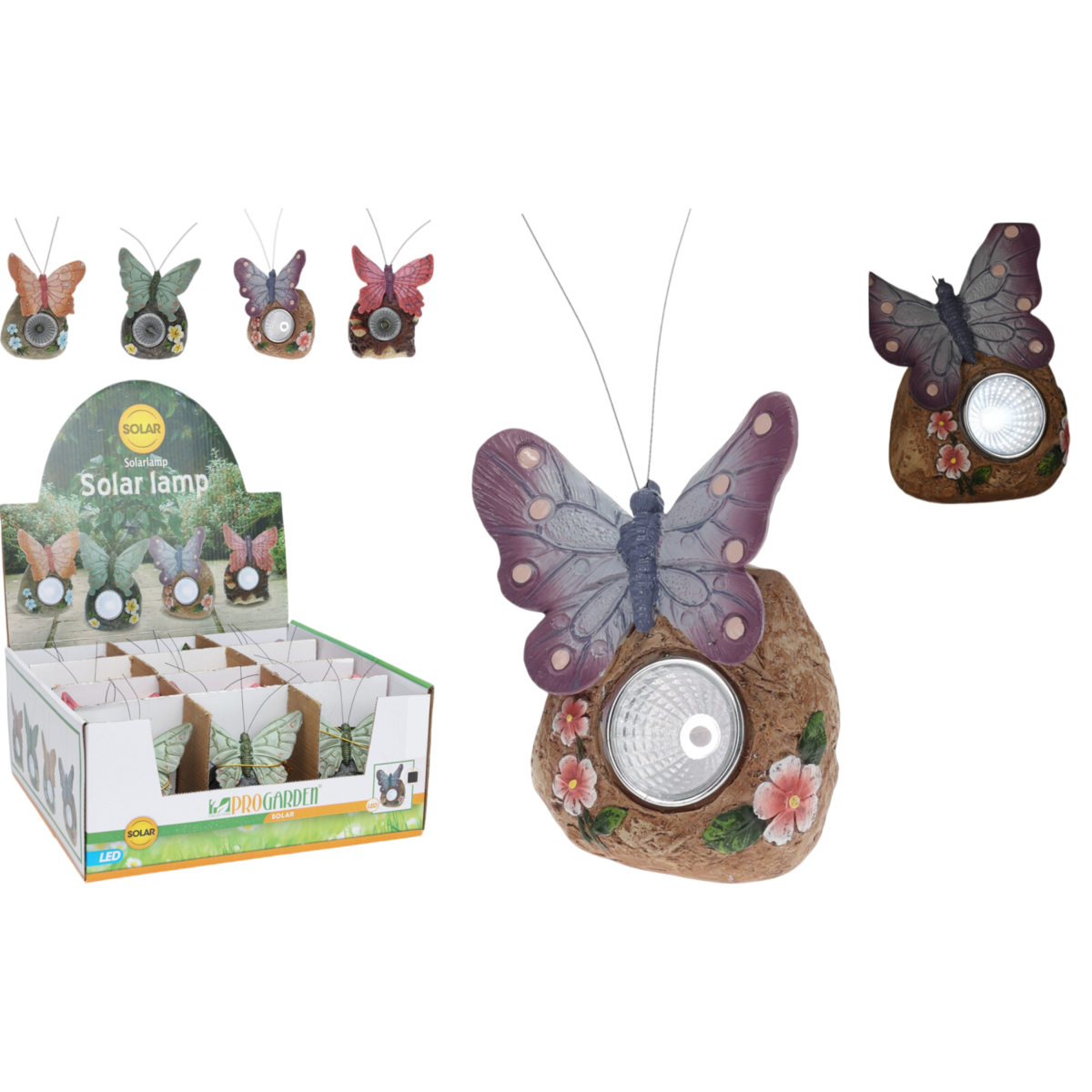 Ez a kompakt méretű, pillangó motívumos szolár kerti lámpa nappal dekoratív dísz, sötétedés után pedig lágy fényt ad a kertben. A kőhatású talpon ülő pillangó részletgazdag kidolgozású, több színváltozatban elérhető. Beépített napelemmel és újratölthető akkumulátorral működik, így nem igényel vezetékezést.