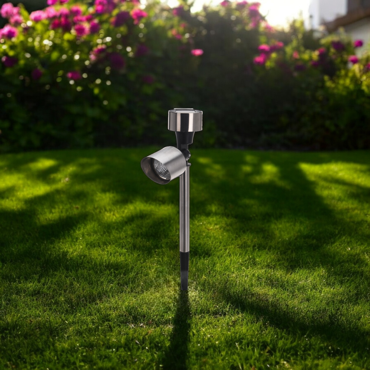 Ez a szolár mini LED leszúrható lámpa rozsdamentes acél kivitelben készült, amely időjárásállóbb megoldást kínál kültéri használatra. A 25,5×12,5×5,5 cm méretű lámpatest irányítható fejjel rendelkezik, így a fény célzottan irányítható növényekre, kerti elemekre vagy járdaszakaszokra. Letisztult, modern megjelenése jól illeszkedik különböző kertstílusokhoz.