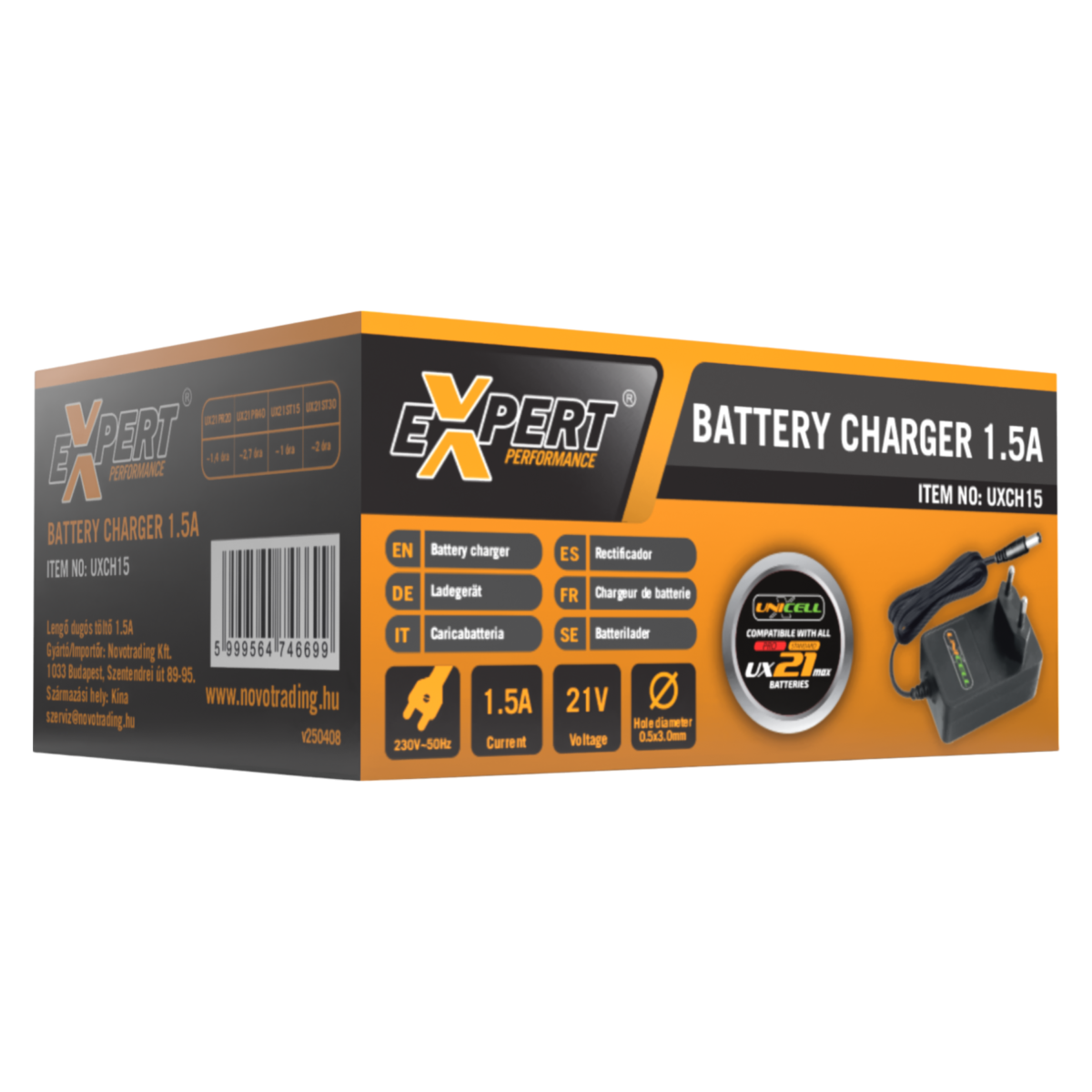 Az Expert UniCell 1,5A-es lengő dugós töltő megbízható és egyszerű megoldást kínál az UniCell akkumulátorok gyors és biztonságos feltöltésére. Kompakt mérete és plug-in adapteres kialakítása lehetővé teszi, hogy könnyen használhasd bármilyen szabványos fali aljzatban – akár otthon, akár műhelyben vagy szerelési helyszínen.