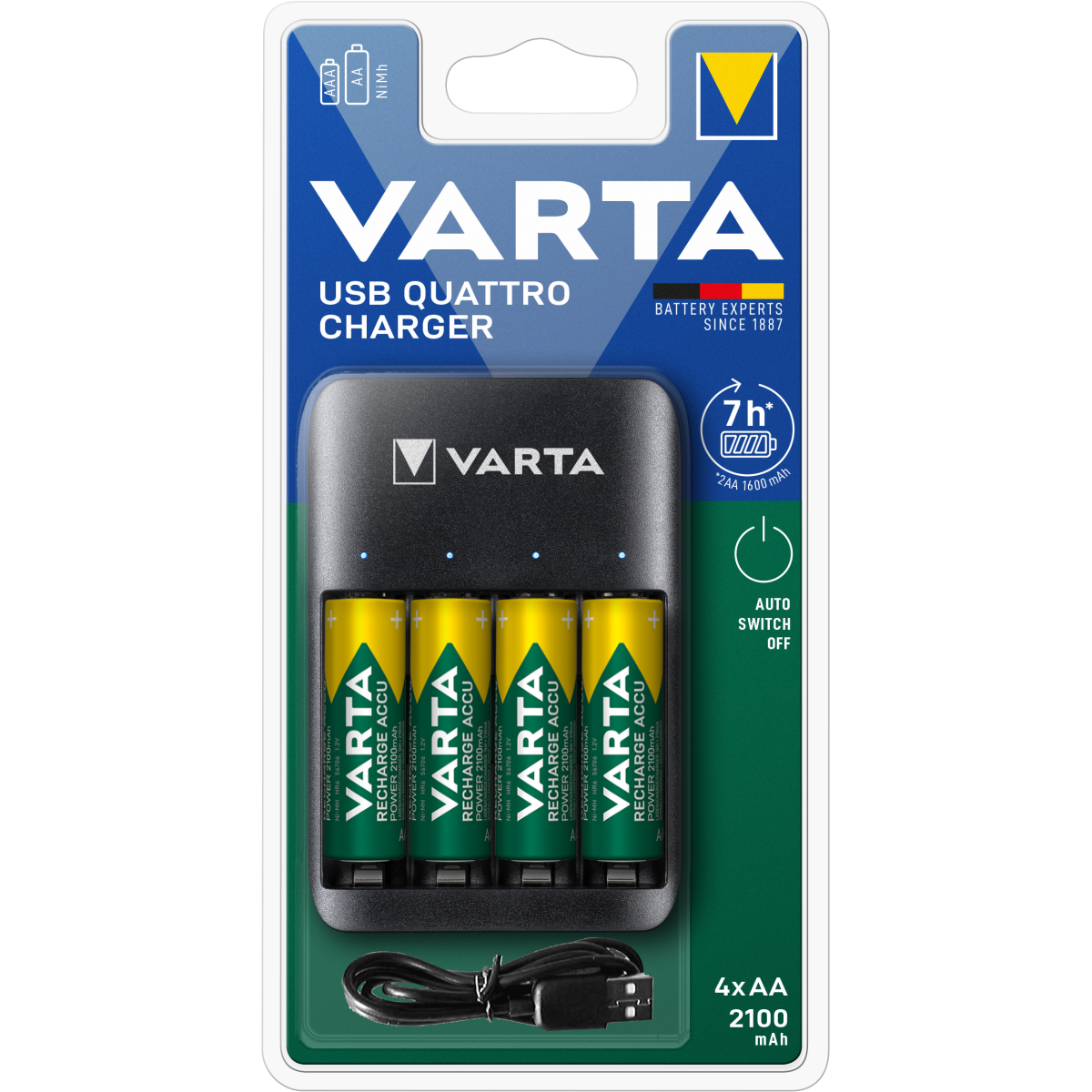 Kompakt és kényelmes töltő. Cellánkénti töltés, 1-4 AA vagy AAA NiMH elem egyidejű töltése. Töltési idő: akár 7 óra. Kék LED-ek a töltés jelzésére. USB C bemenet 5 V/ 1 A. Fejlett biztonsági funkciók: mínusz delta V, biztonsági időzítő, rossz polaritás és rövidzárlat elleni védelem, rossz cellák és alkáli elem érzékelés. Micro USB töltőkábellel. Négy Recharge Accu Power AA 2100 mAh-val akkuval.