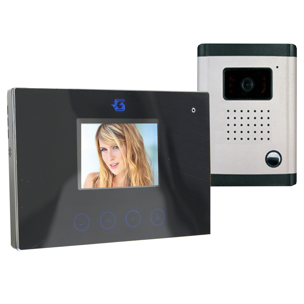 Színes video kaputelefon 3,5'' LCD TFT lapos monitor. CMOS színes kamerával. Érintőgomb vezérléssel. Kamera felbontás: 380 TV sor, monitor felbontás: 420 TV sor CCTV megfigyelő kamera. 2 perc folyamatos üzemeléssel. Hangerő és kontrasztszabályozó 17 színárnyalat beállítás látószög: 92f ok, DC15V adapter.