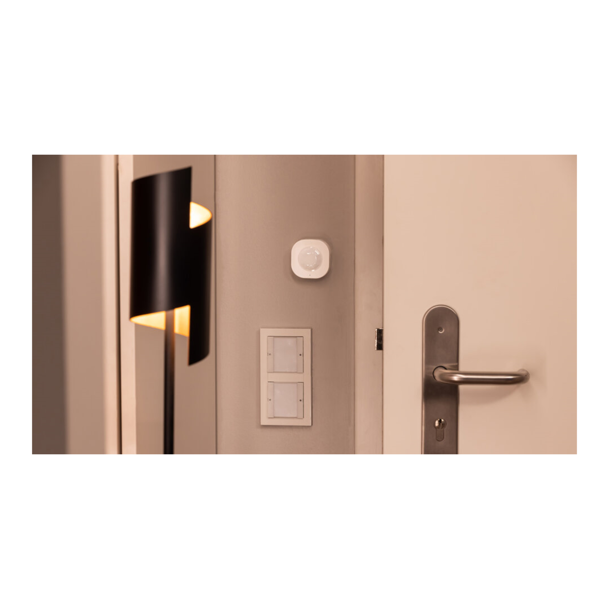 Kompakt, vezeték nélküli PIR mozgásérzékelő, amely WiFi-n (2,4 GHz) keresztül csatlakozik az otthoni hálózathoz, és az ingyenes SMART+ alkalmazásból állítható.