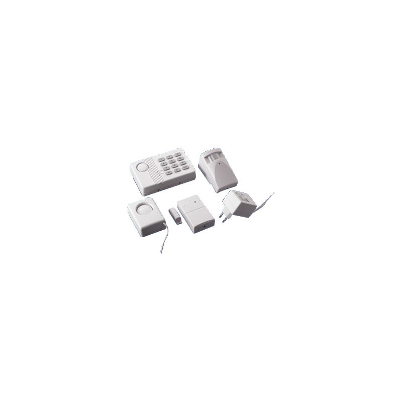 A szett központi egységet, mozgásérzékelőt, nyitásérzékelőt és külső szirénát tartalmaz.