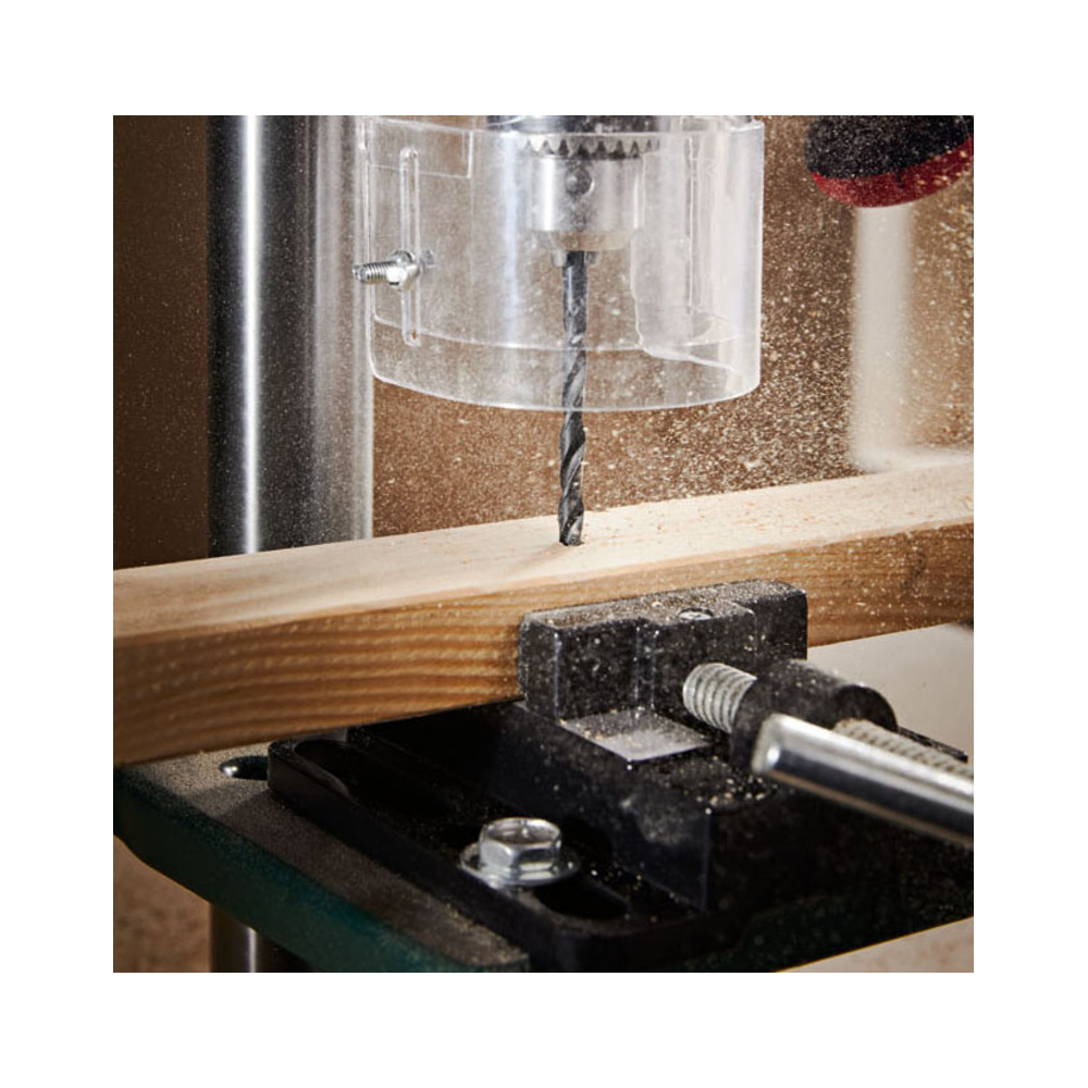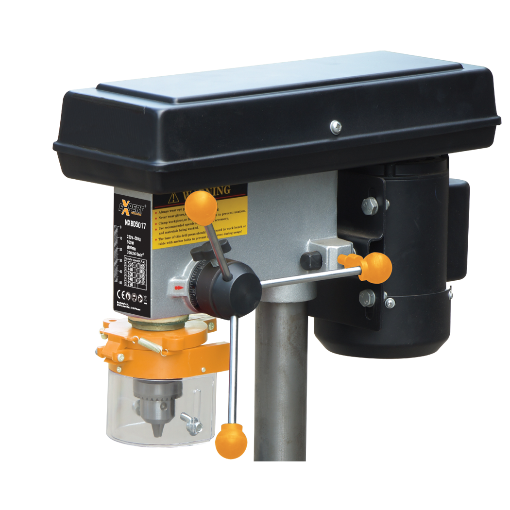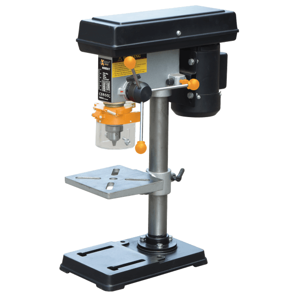 A készülék a már megismert és bevált NXBD5016 típusú állványos/oszlopos fúrógép új köntösbe csomagolt változata, mely különféle anyagok kényelmes asztali fúrására alkalmazható. A munkaasztal magassága állítható, és mindkét oldalra 45°-ban dönthető. A munkaasztal 180 fokos elforgatása is lehetséges mindkét irányban, ezzel lehetővé téve, hogy nagyobb munkadarabokon is dolgozhasson. Tokmánya egy rugós védőpajzzsal is rendelkezik, ezzel biztosítva fúrás közben a nagyobb fokú védelmet, a precíz munkát pedig mélységállító és határoló is segíti. Gépsatu használata főleg fémek fúrásánál javasolt. Teljesítményfelvétel: 500W. 9 sebesség állítási lehetőség 300-2410 ford./perc között. Gondozásmentes, indukciós motor. Teljes gépmagasság: 610 mm. Tokmánybefogás: MT2, Ø 1,5 - 16 mm. Fúrásmélység: 50 mm. Munkalap mérete: 170x170 mm. Alap mérete: 320x198 mm. Elektromágneses kapcsolóval. Gépsatu a 240391 cikkszám alatt külön vásárolható.