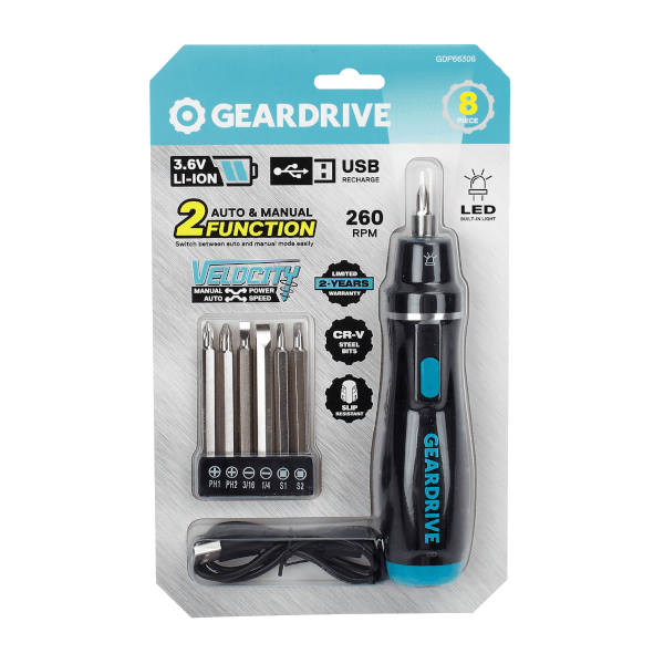 Geardrive akkus csavarhúzó szett usb-ről tölthető, 8 részes