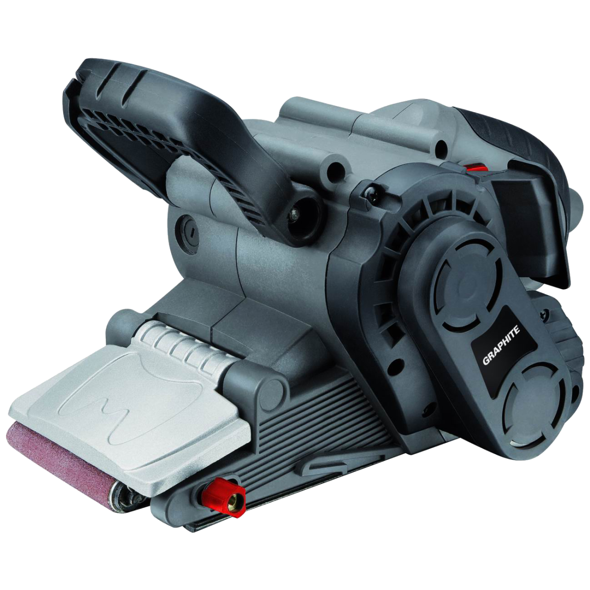 A 800 W teljesítményű GRAPHITE profi szalagcsiszoló (kat. sz. 59G392) fa és faalapú anyagból készült, fém és műanyag munkadarabok megmunkálására szolgál. A szerszámra az ergonómikus formakialakítás, a korszerű formatervezés jellemző, a fő- és segédmarkolat el van látva csúszásmentes feltétekkel, állásszögük pedig állítható. A csiszológép vezetőgörgője sérüléseknek és magas hőmérsékleteknek ellenálló alumíniumötvözetből készült. A mellső görgő kis átmérője (16,5 mm) lehetővé teszi a csiszolást nehezen hozzáférhető helyeken is. Fel van szerelve a folyamatos üzemet biztosító indítókapcsoló reteszeléssel, valamint felhajtható a végtelenített szalag borítása. A maximális szalagtovábbítási sebesség 260 m/perc. A szettben megtalálható a porgyűjtő zsák és a 75 x 457 mm-es végtelenített csiszolószalag. A CE tanúsítvány bizonyítja az európai szabványoknak való megfelelést.