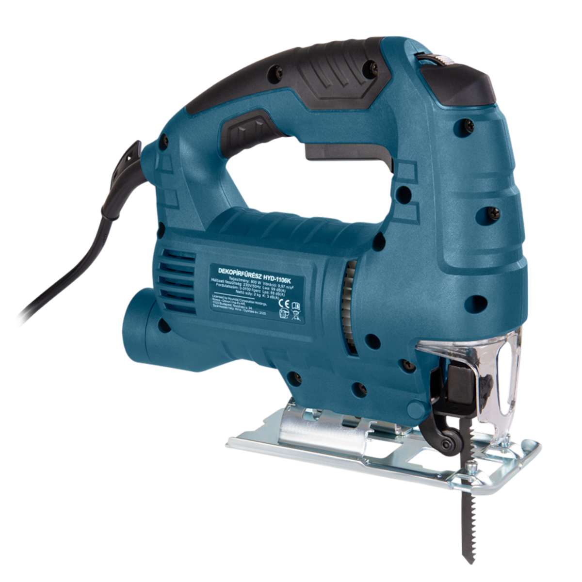 A HYD-1106K dekopírfűrész ideális választás, ha megbízható és sokoldalúan használható gépre van szükséged különféle vágási feladatokhoz. A 800 W-os motor erőteljes teljesítményt biztosít, legyen szó fa- vagy fémanyagokról. Az állítható fordulatszám (0–2800/perc) lehetővé teszi az anyaghoz igazodó munkavégzést, míg a dönthető alaplap segítségével akár 45°-os gérvágásokat is könnyedén kivitelezhetsz.