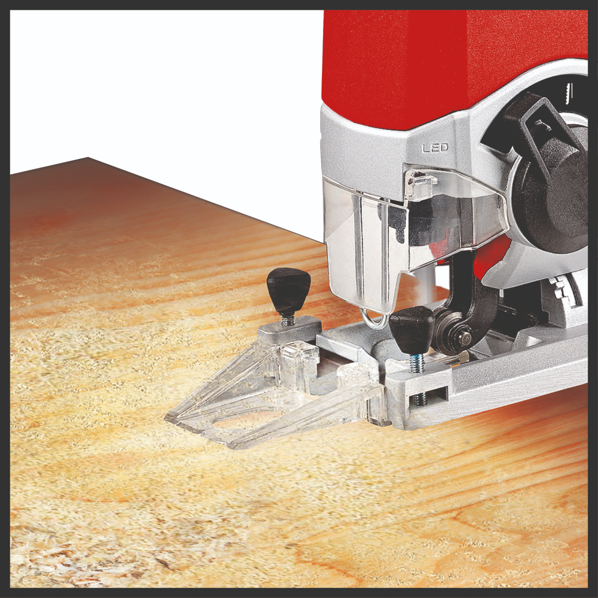 A felszakadásgátló megakadályozza az anyag sérülését, a vonalvezető biztosítja az egyenes vágásokat, míg az LED-világítás és porelszívó funkció tiszta és jól látható munkaterületet garantál.