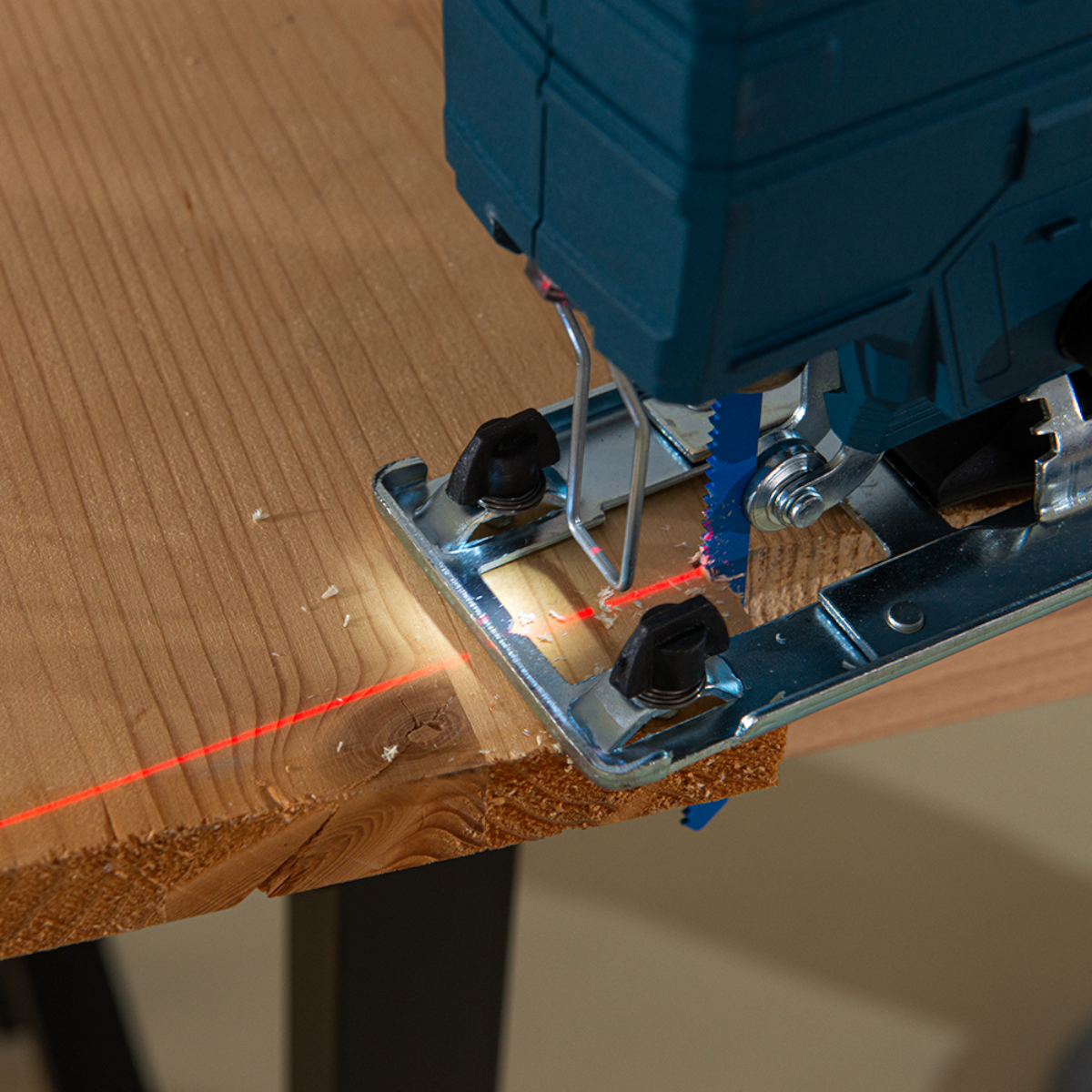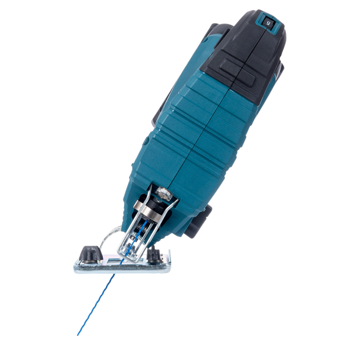 A beépített lézer és LED világítás segít pontosan követni a vágásvonalat gyenge fényviszonyok között is, míg az elfújás funkció tisztán tartja a munkaterületet. A 6 fokozatú fordulatszabályzó és a +3 fokozatig állítható előtolás lehetővé teszi az anyaghoz illeszkedő vágási beállításokat. Az egyszerű lapcsere érdekében a készülék szerszám nélküli, gyorskioldású rendszerrel van felszerelve.