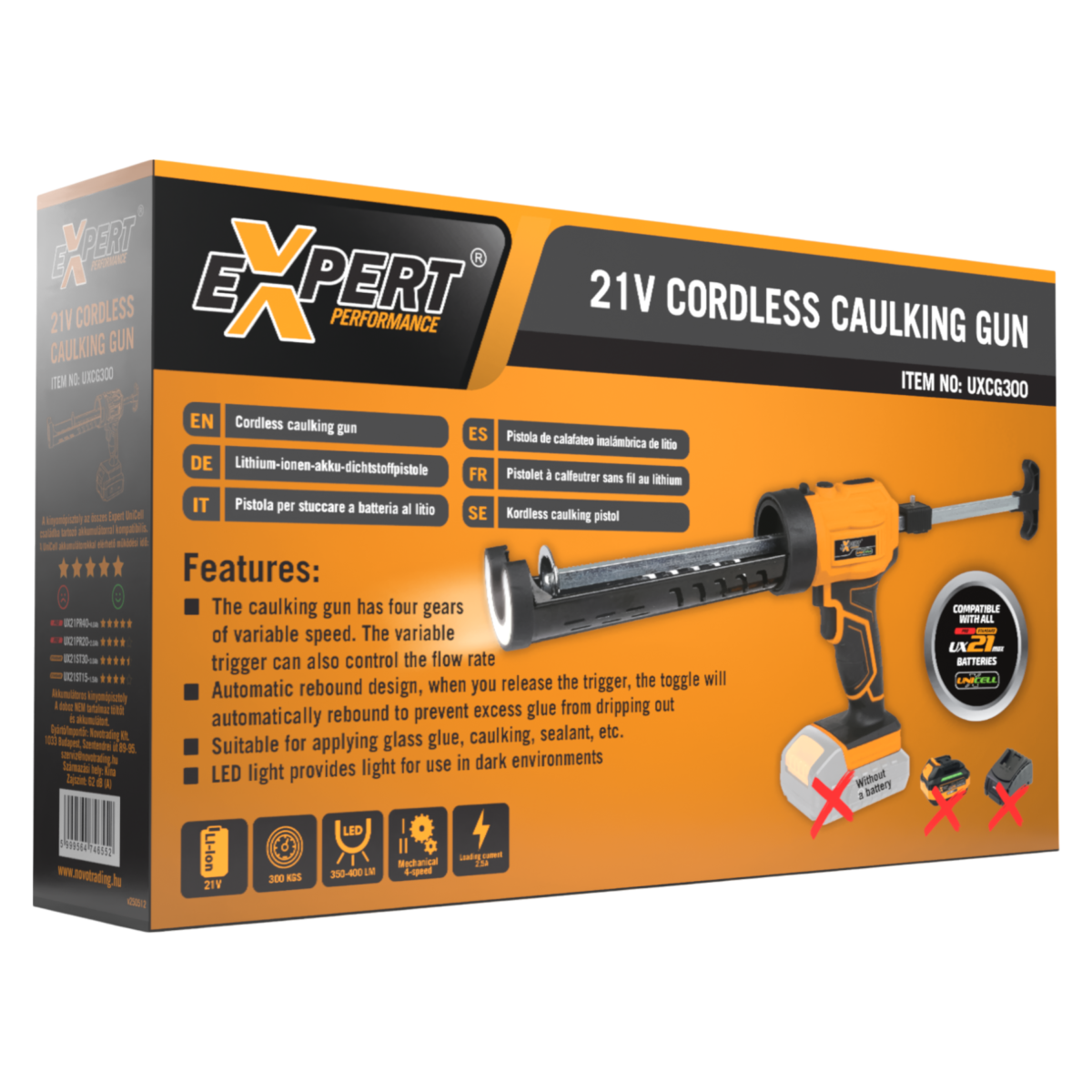 Az Expert UniCell akkumulátoros kinyomópisztoly tökéletes választás szilikon, üvegragasztó és más tömítőanyagok pontos és egyenletes felviteléhez. A 4 fokozatú sebességállítás és a fokozatmentes kioldó lehetővé teszi, hogy mindig az adott feladathoz igazítsd az adagolást, míg az automatikus visszahúzó mechanizmus csökkenti a túlfolyás esélyét. Kompakt kialakítása, valamint az erős LED világítás megkönnyíti a munkát gyengén megvilágított helyeken is.