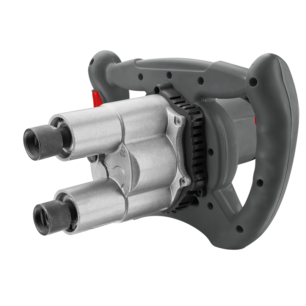 GRAPHITE professzionális, kétorsós elektromos keverőgép (kat. sz. 58G788) 1600 W teljesítményű motorral, sűrű és híg gipsz-, ragasztómasszák, festékek keverésére egyszerre max. 160 l mennyiségben. A keverőgép strapabíró konstrukciójának és effektív hőelvezetési rendszerének köszönhetően alkalmas a folyamatos üzemű működésre nagy építkezések kivitelezési munkálatai során. A keverőgép orsóinak fordulatszáma szabályozható, és a lágyindítási funkció is be van építve. A gép motorja I. sebességi fokozatban 0-450/perc, II. sebességi fokozatban pedig 0-600/perc fordulatszámon képes üzemelni. A gép megfelelő formakialakítású, csúszásmentes anyaggal bevont markolata kényelmes, biztonságos munkavégzést tesz lehetővé hosszabb időn keresztül is. A biztonság növelésére a keverőgép fel lett szerelve a véletlen beindítást megakadályozó reteszeléssel is. A főorsóház magas hőmérsékleteknek ellenálló alumíniumötvözetből készült. A keverőgéphez tartalék keverőszárak és szerelőkulcsok is tartoznak. A CE tanúsítvány bizonyítja az európai szabványoknak való megfelelést.