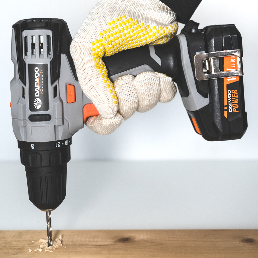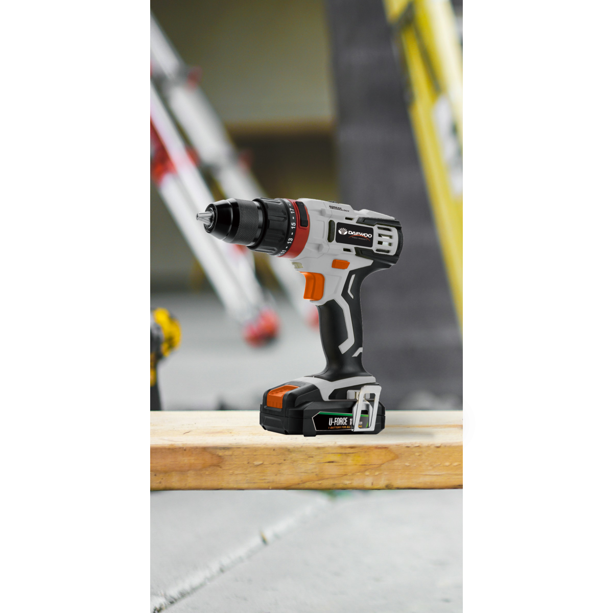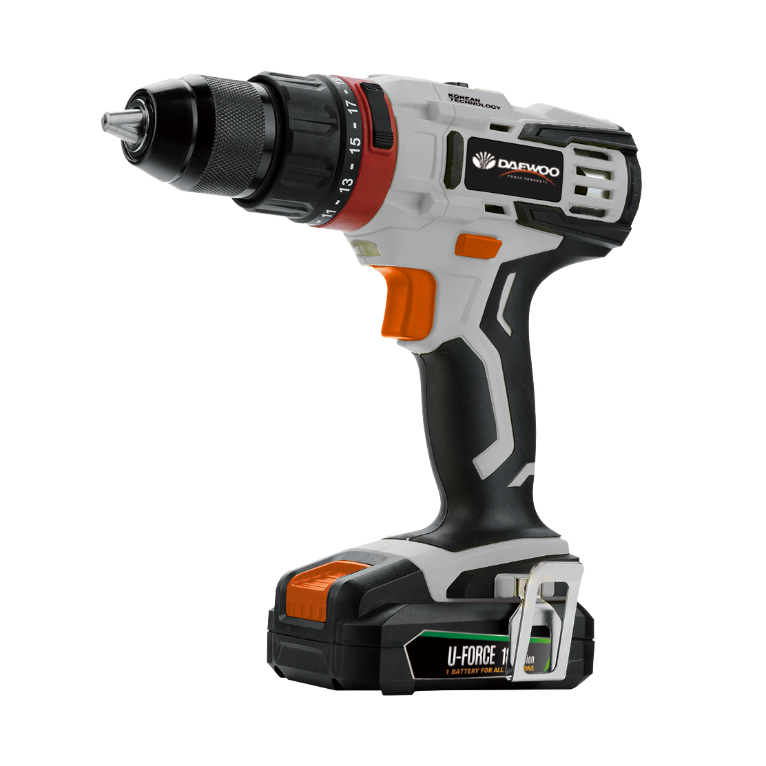 DALD18-M1 Daewoo lítium akkumulátoros ütvefúró akkumulátor és töltő nélkül. LED világítás, öv kampó.